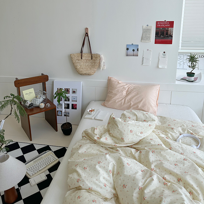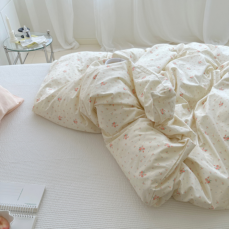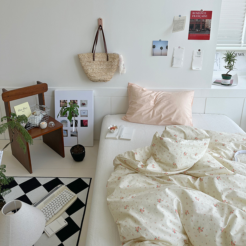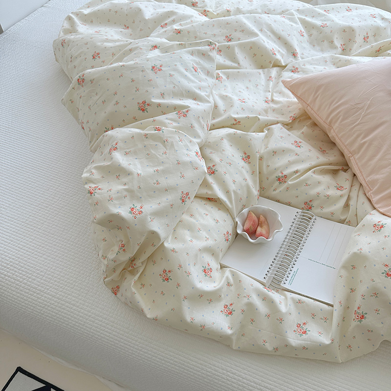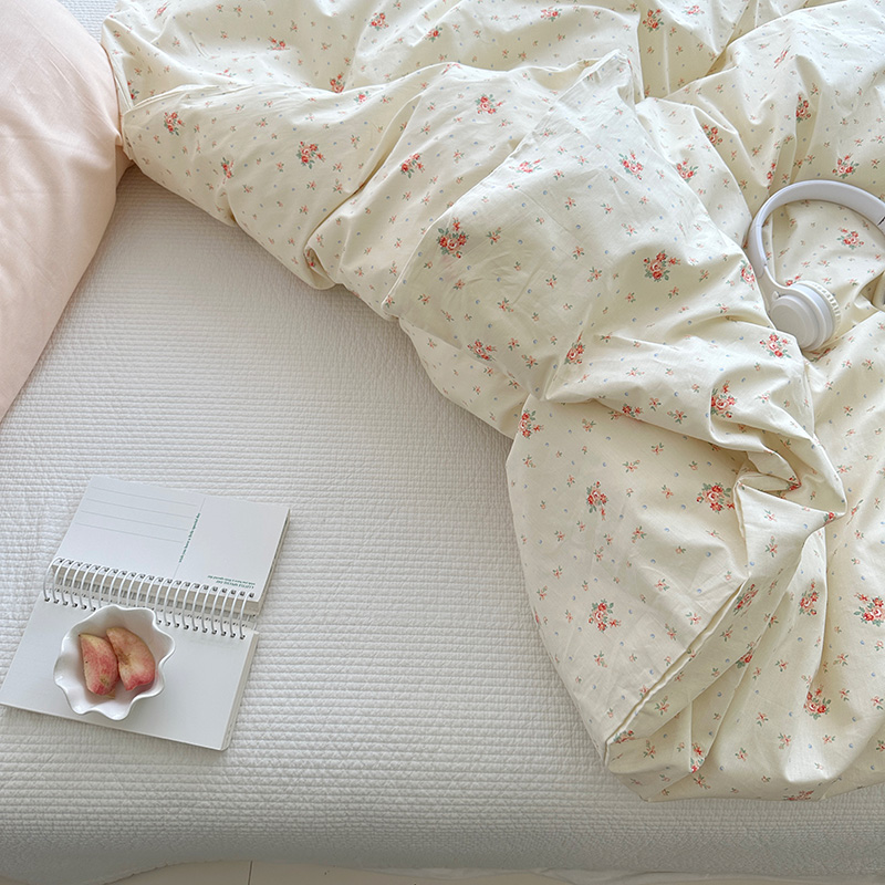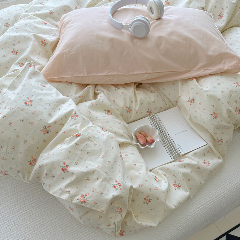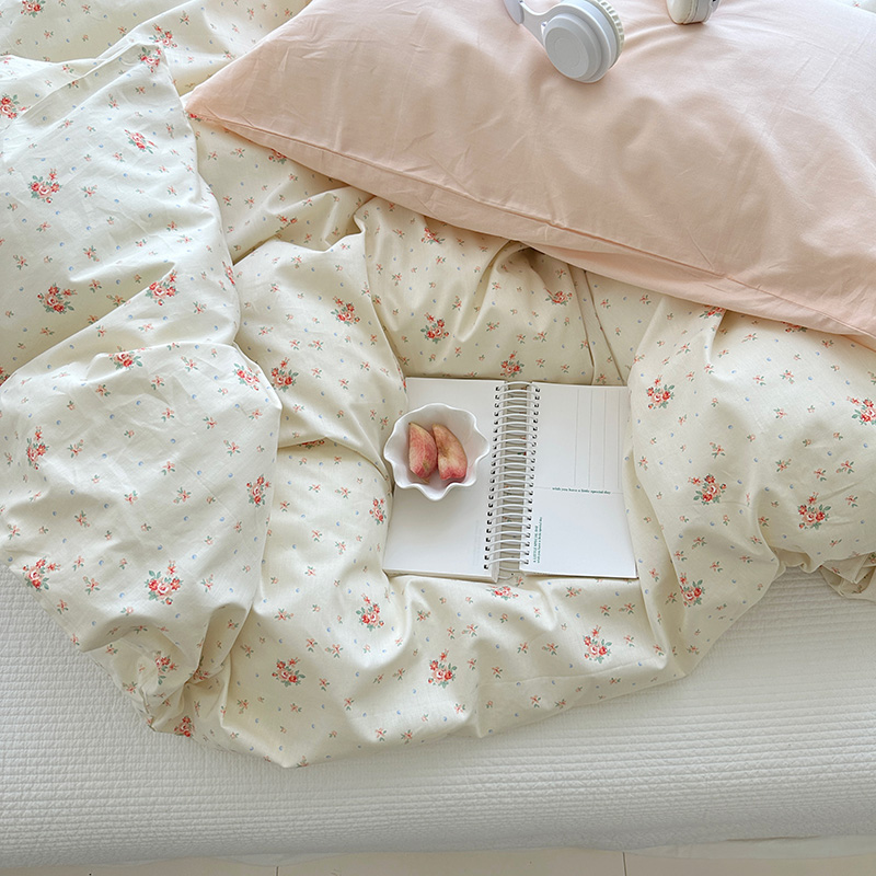(总)尺素 2026田园小清新纯棉四件套出口韩国ins博主风全棉被套纯色加大床单1.8床笠印花枕套学生宿舍三件套,春不晚 桃粉,花似锦 奶白,紫鸢千夏紫