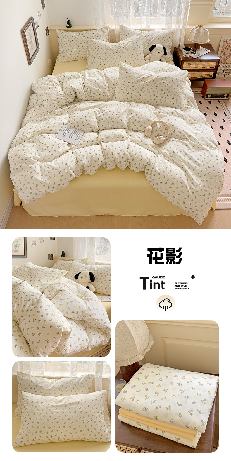 当前位置: 91家纺网 > 商品网购 > 床品套件 > 四件套 > 其它四件套 > 夜笙2025新款A类水洗棉双层纱印花四件套 花影