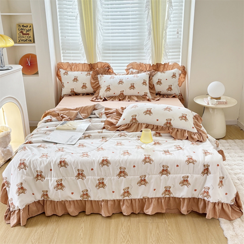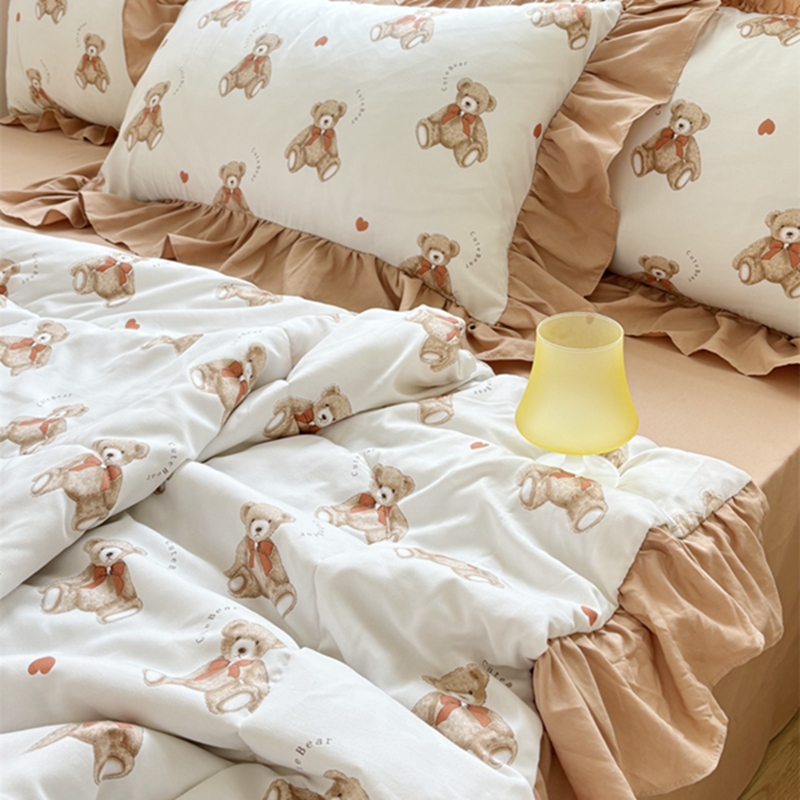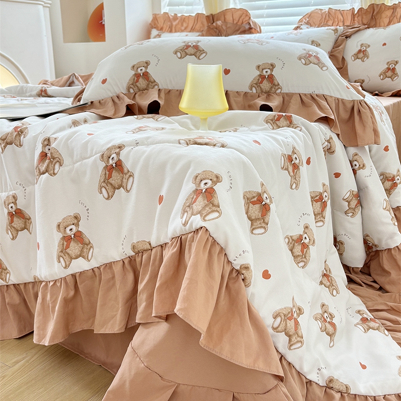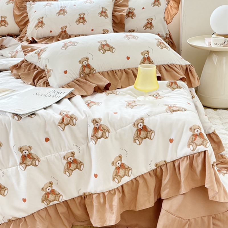 仟网汇 2025新款韩版糯糯棉花边夏被四件套田园法式 玩具熊