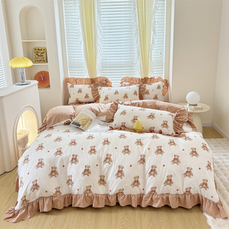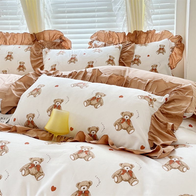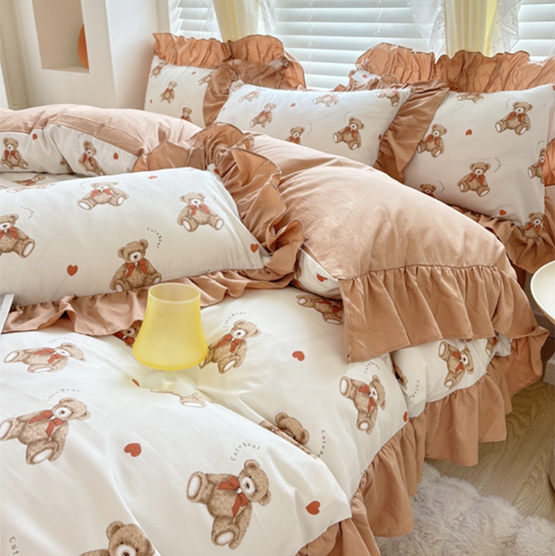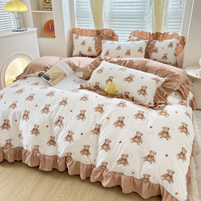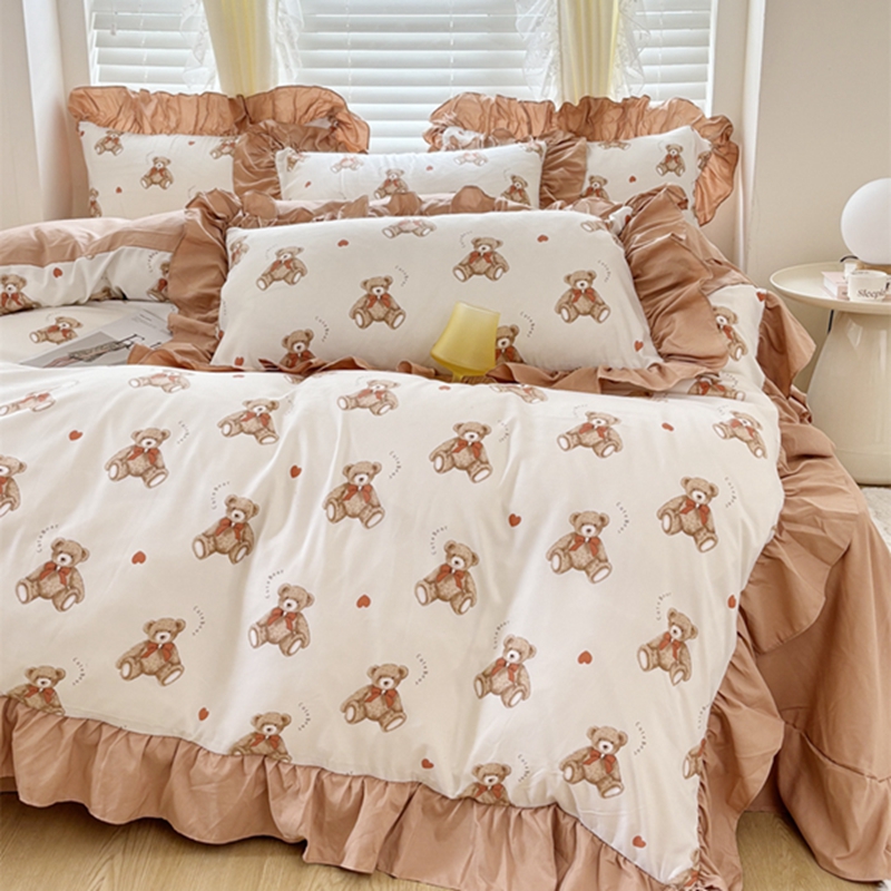 仟网汇 2025新款韩版糯糯棉花边四件套田园法式 玩具熊