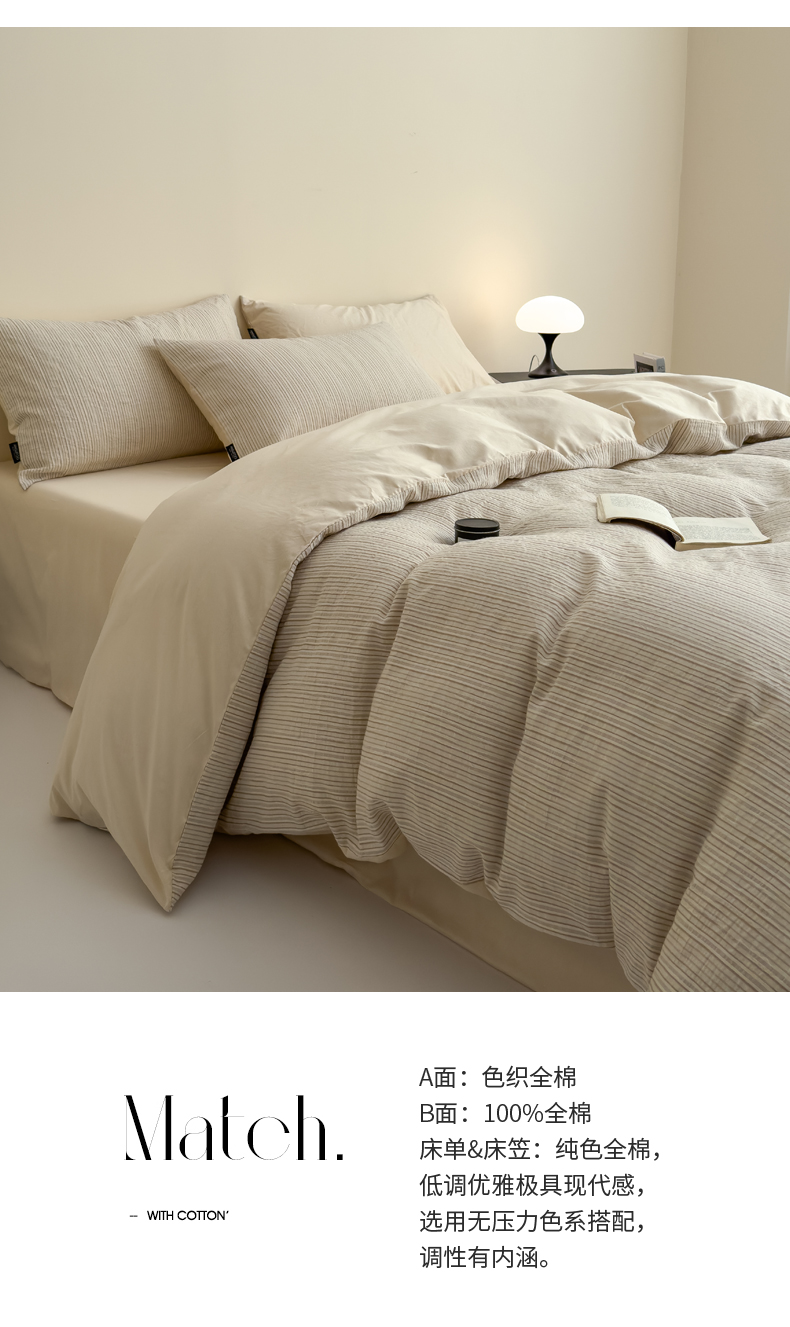 商品名称:席世家 2025新款全棉色织提花四件套-速写 速写-黄