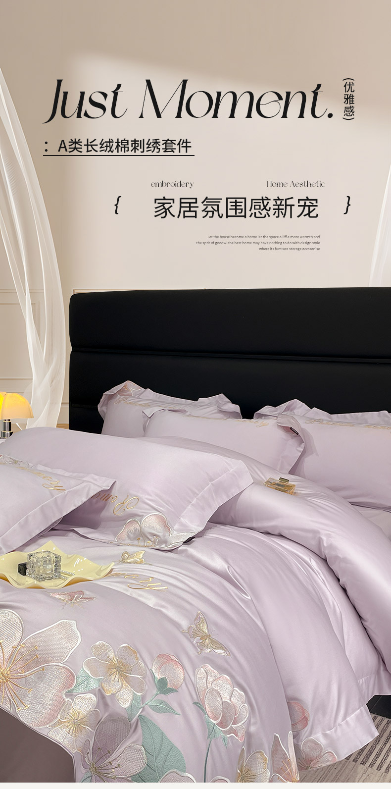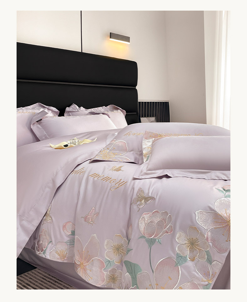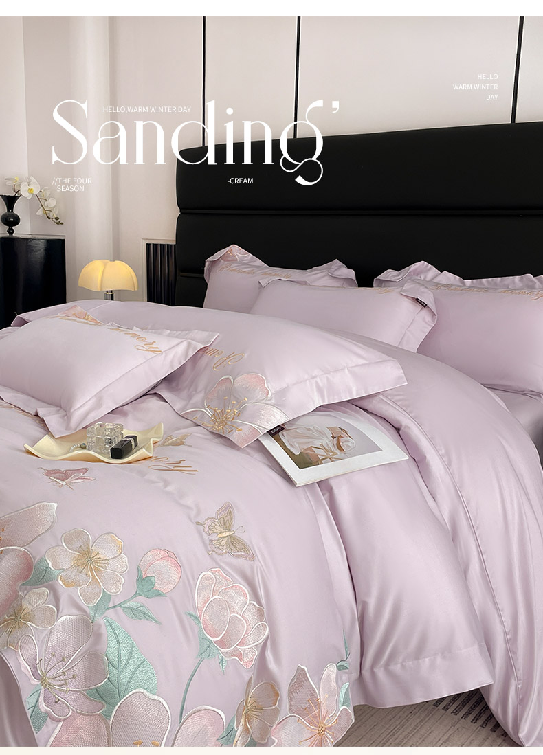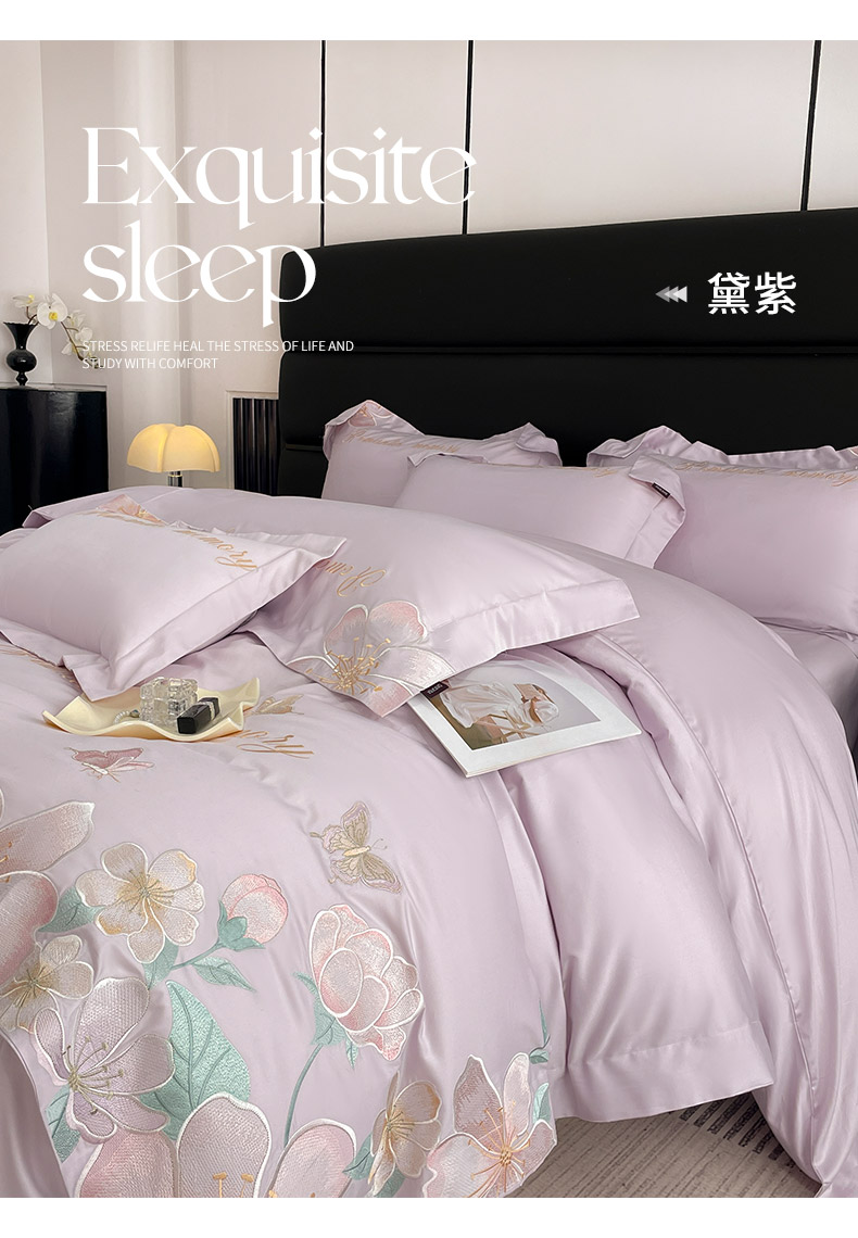 2025春夏A类100支长绒棉四件套纯棉全棉轻奢风床单被套重工刺绣床上用品-花漫屿 花漫屿-黛紫