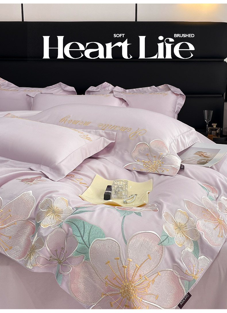 (总)乔利卡沃 2025秋冬新款轻奢高级感加厚保暖全棉纯棉磨毛重工刺绣四件套床上用品花间集,花间集-黛紫,花间集-红桃,花间集-慕蓝,花间集-清绿,花间集-柔杏,花间集-颜粉