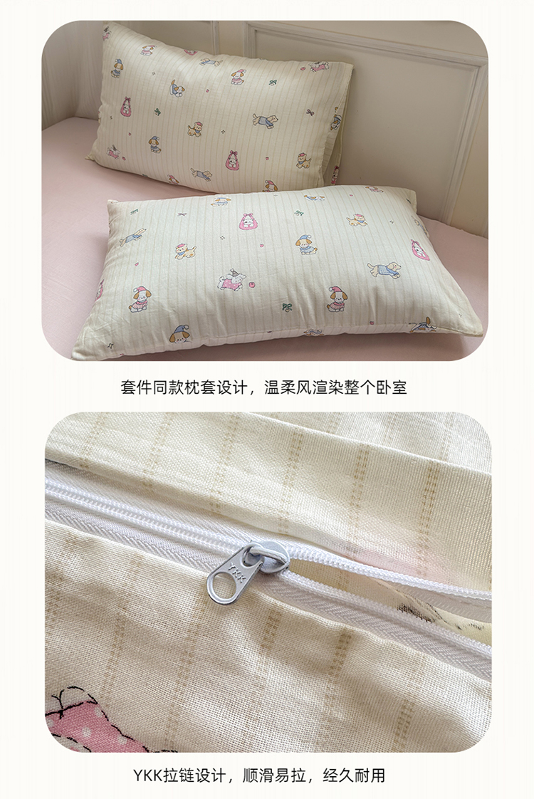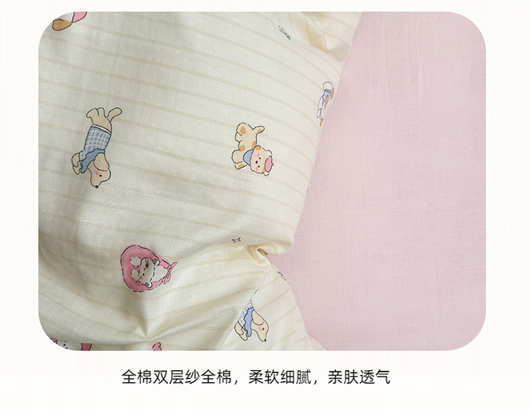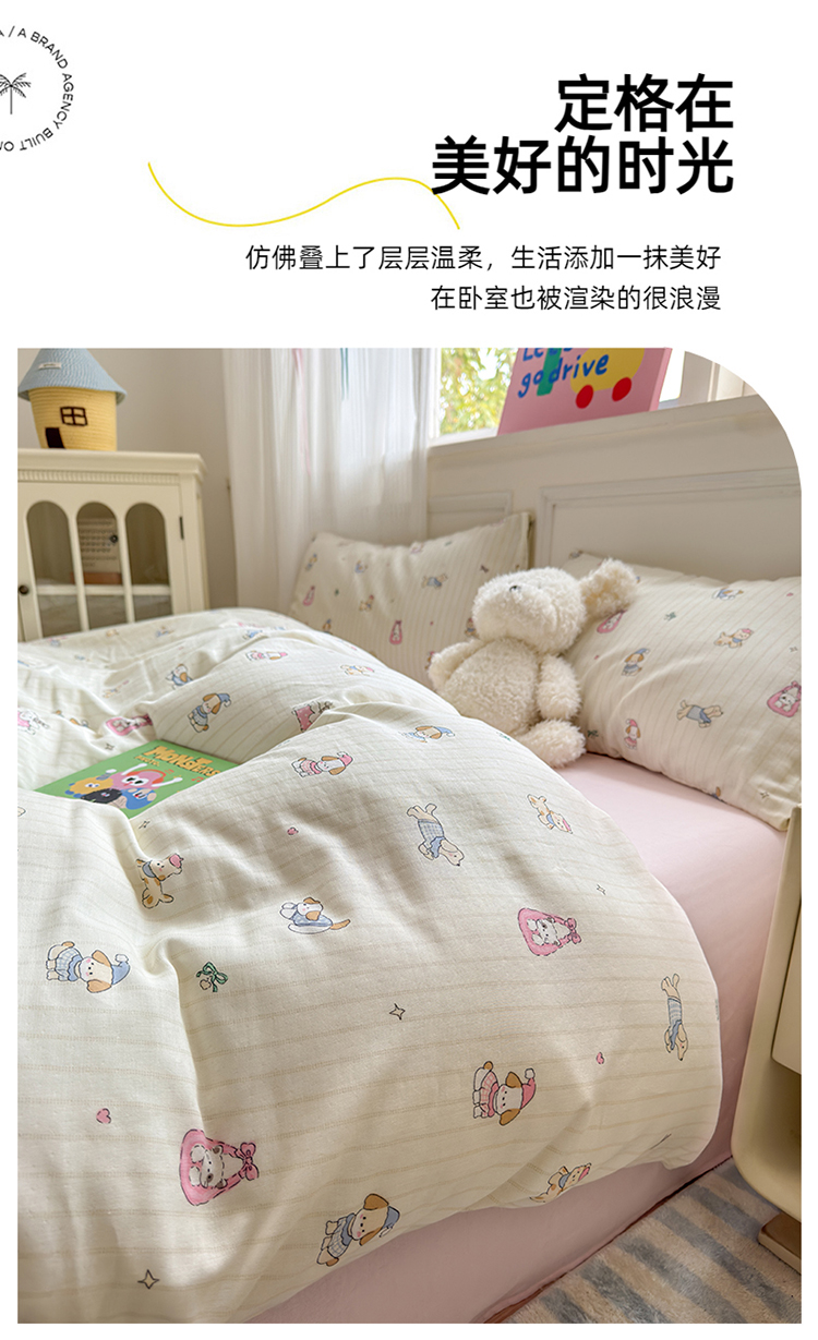 商品名称:2025新款全棉A类双层纱四件套系列-叠拍 嬉戏谷