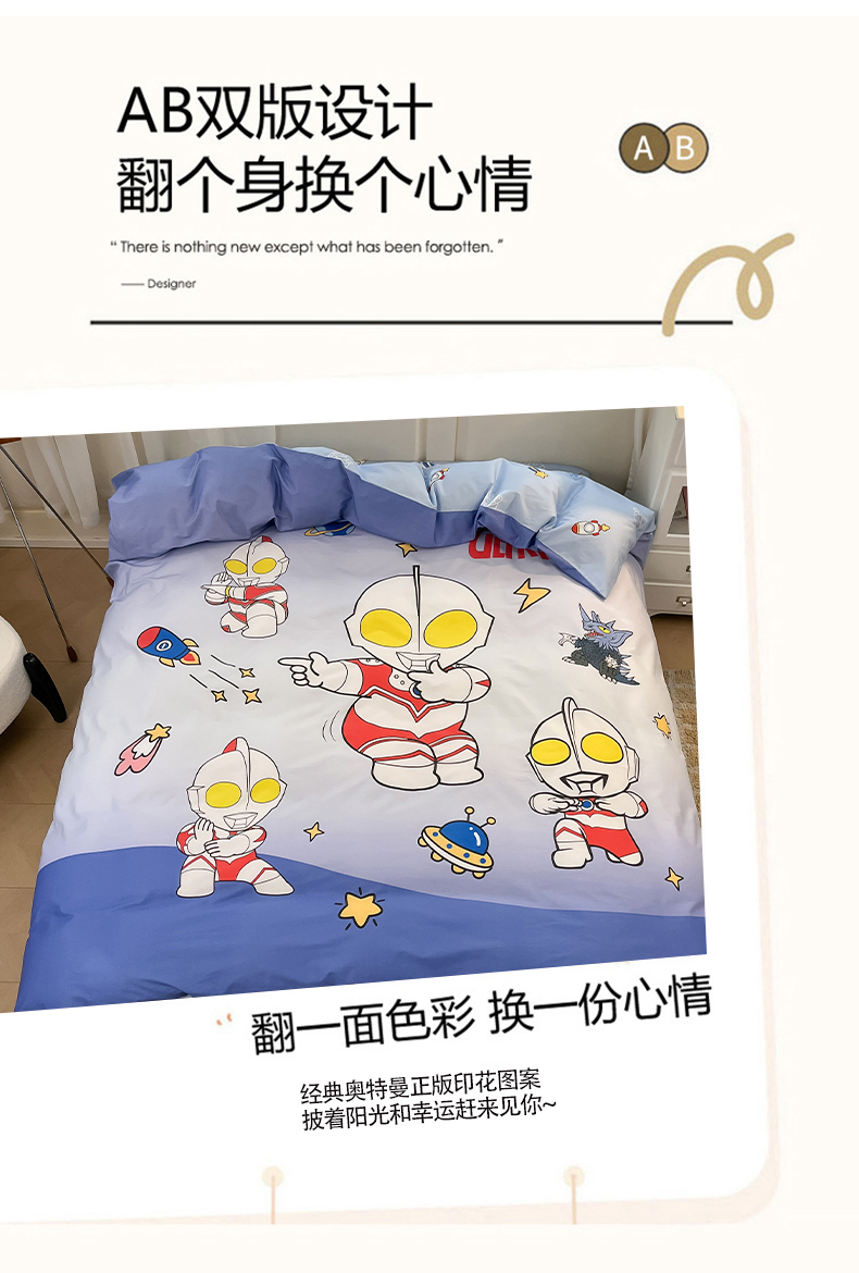 (总)蘭菲家纺 2025新款经典奥特曼小版全棉印花四件套,棒球队,科学家,上学,随影,太空游,小虎队,宇宙飞人,运动员,追风