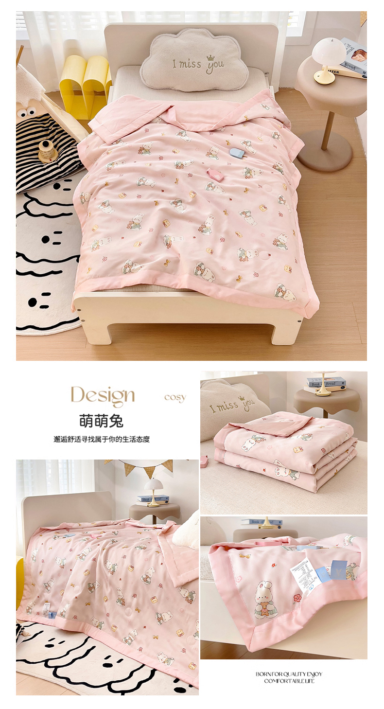 商品名称:御棉坊 2025新款A类50天丝活性印花大豆儿童夏被 萌萌兔