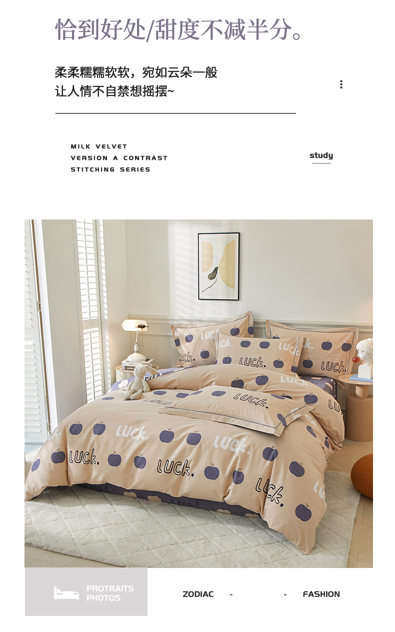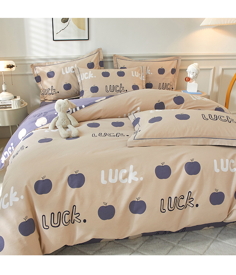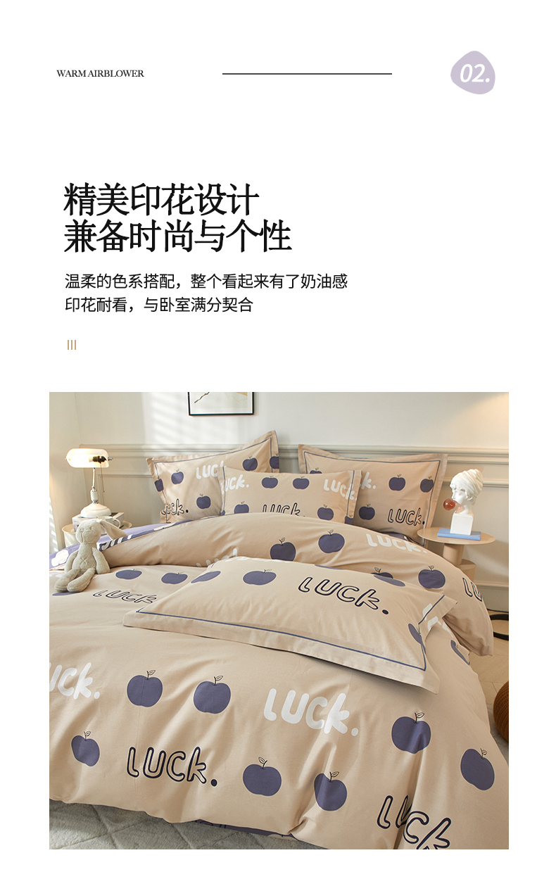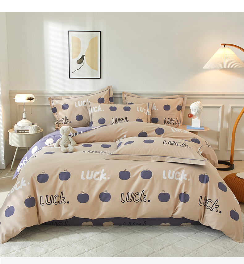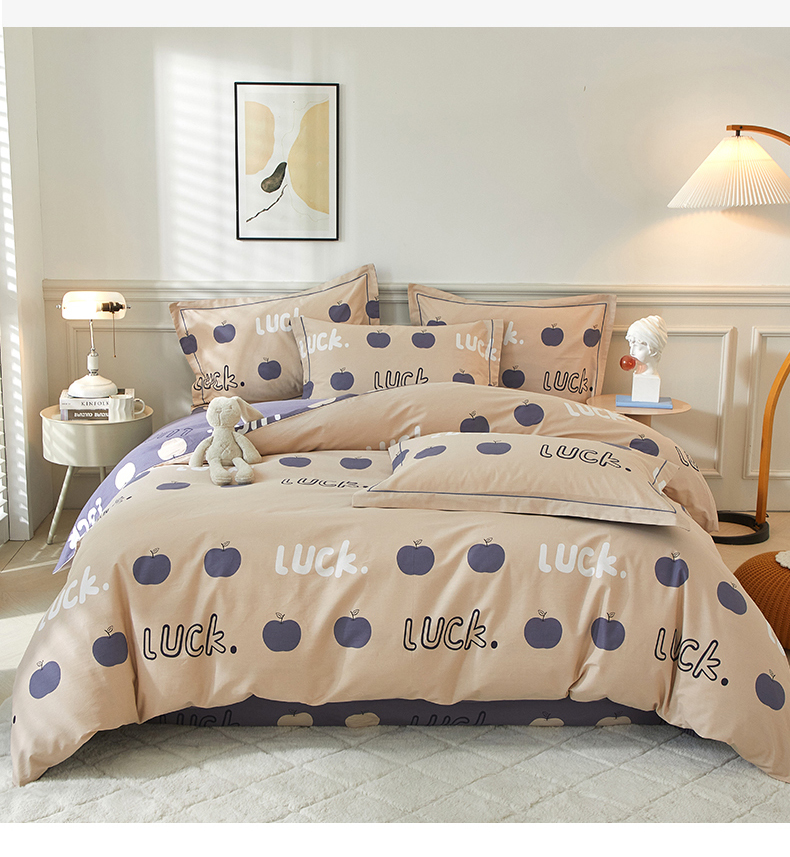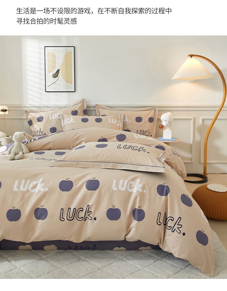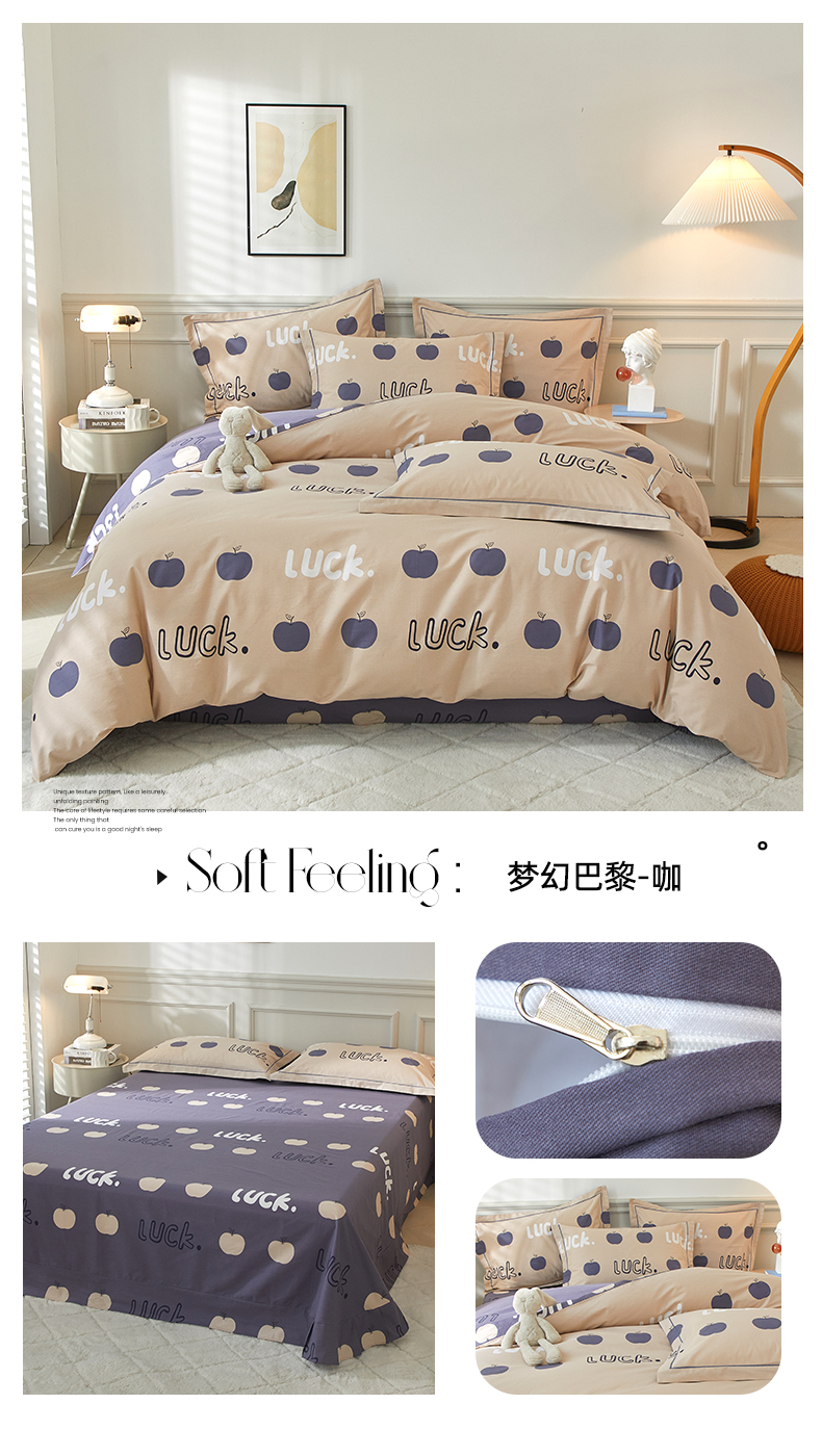 商品名称:金纱玉纺家纺 2025新款全棉13376数码印花四件套(礼盒包装) 苹果世家-咖