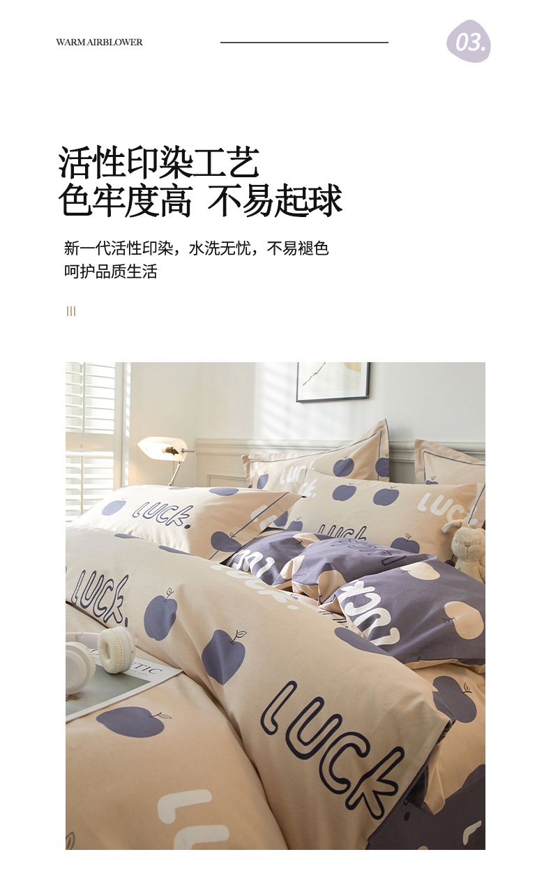 3、通州区市场监督局友情提醒,近期涉及到床上用品不褪色不掉毛不缩水的投诉和以世界知名品牌图案为面料的床品举报较多。请各商家自检自查,对照整改或进行下架处理。