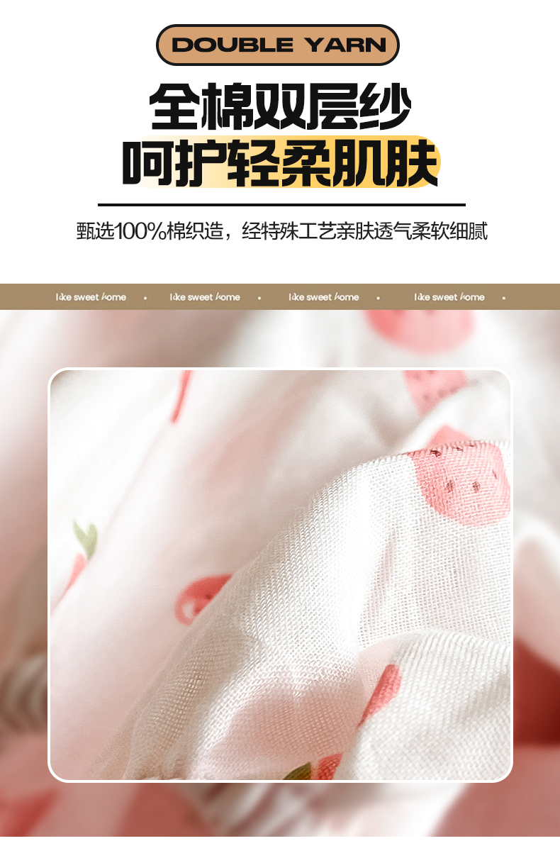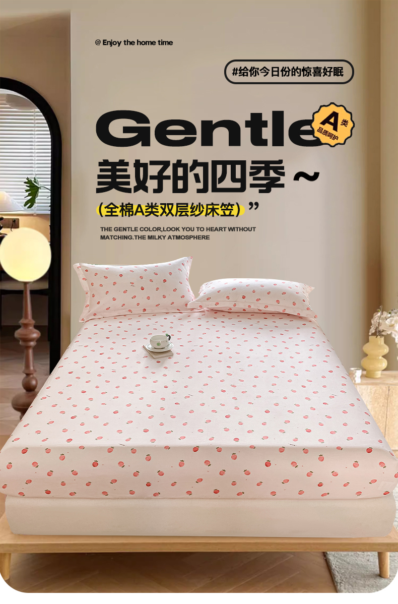 (总)晨希家居 2025新款全棉A类双层纱床笠,草莓园,格调,哈伦,合欢,简派小熊,薇念,勿忘我,小柠檬,星空蓝,云朵梦