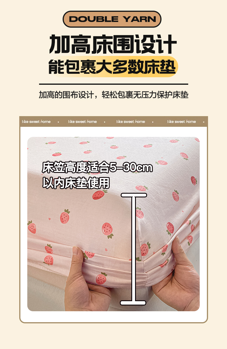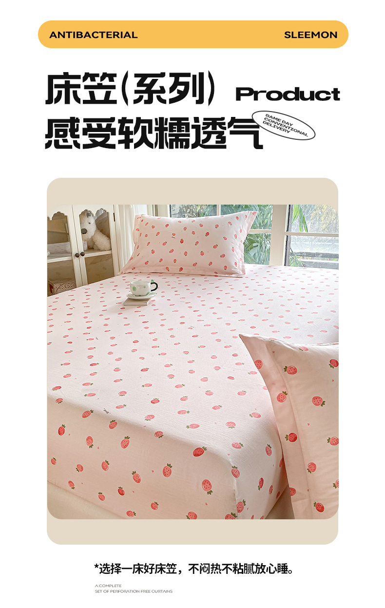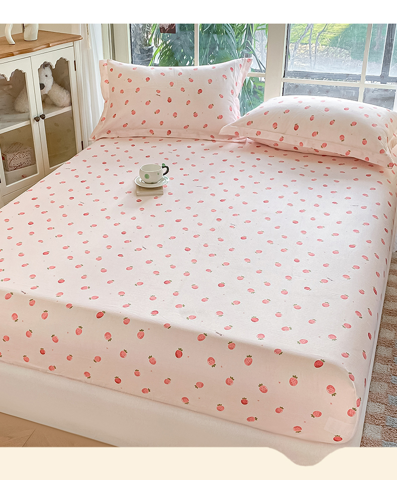 晨希家居 2025新款全棉A类双层纱床笠 草莓园