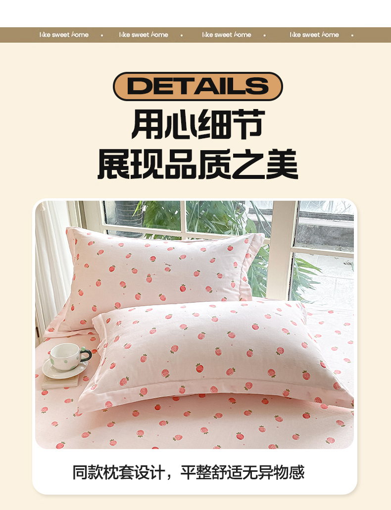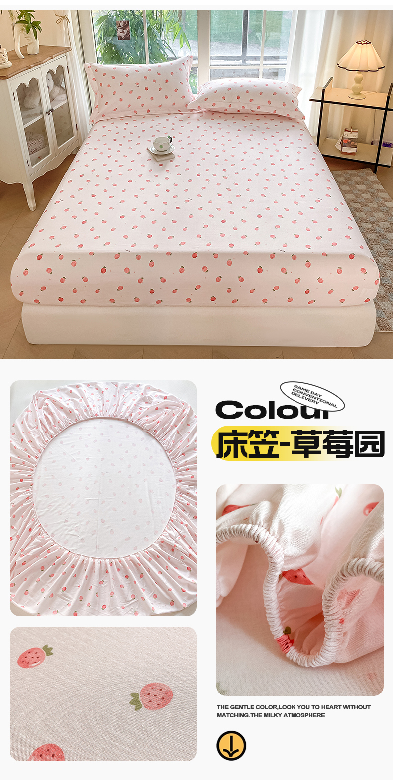 商品名称:晨希家居 2025新款全棉A类双层纱床笠 草莓园