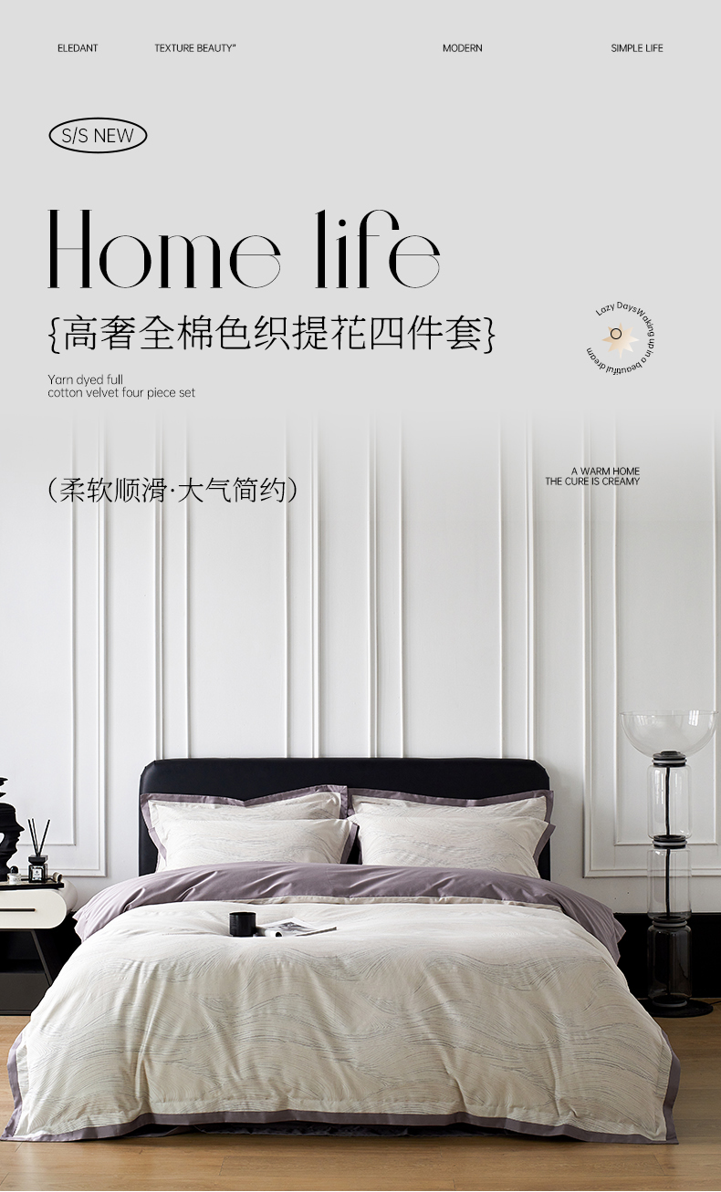 (总)由丽家纺 2025新款高奢色织提花四件套-卡斯特【控价标准券后450起】,卡斯特场景一,卡斯特场景二