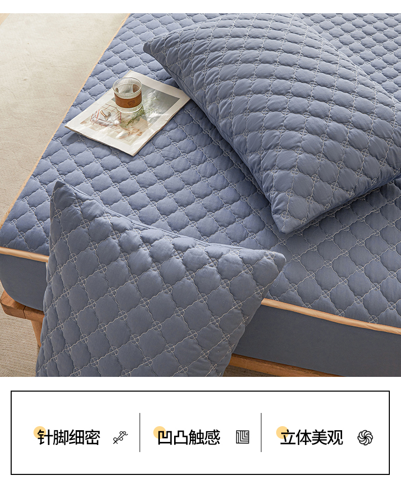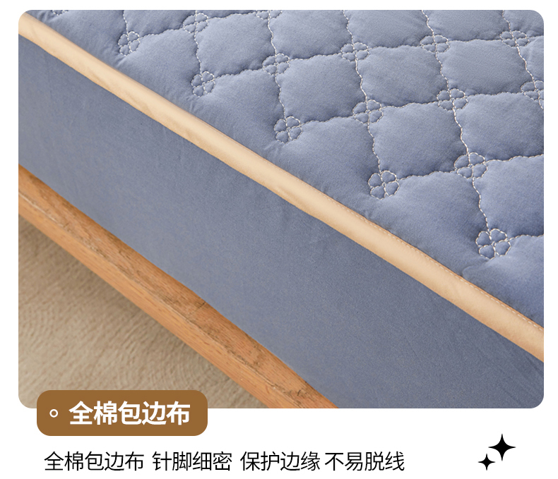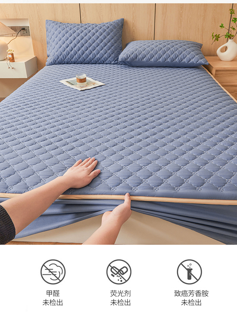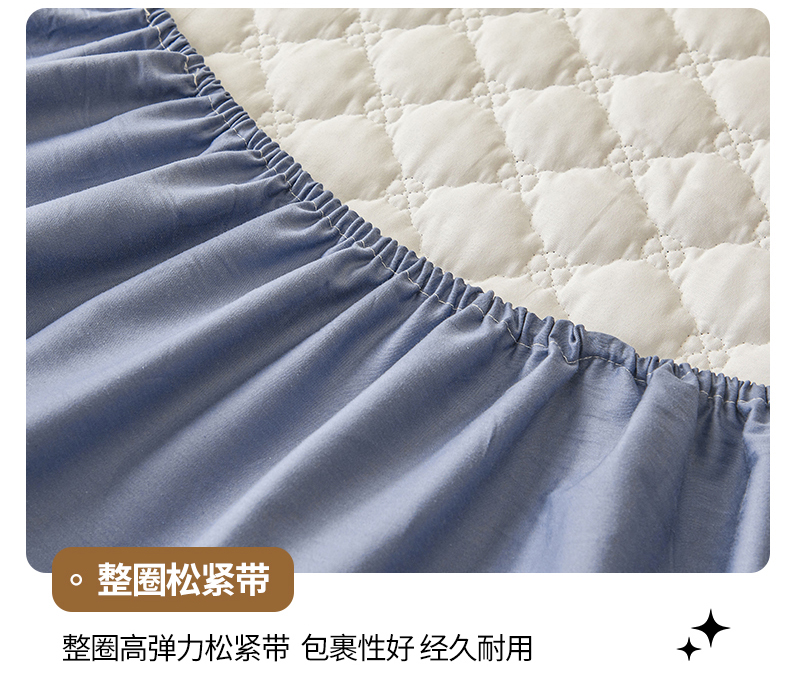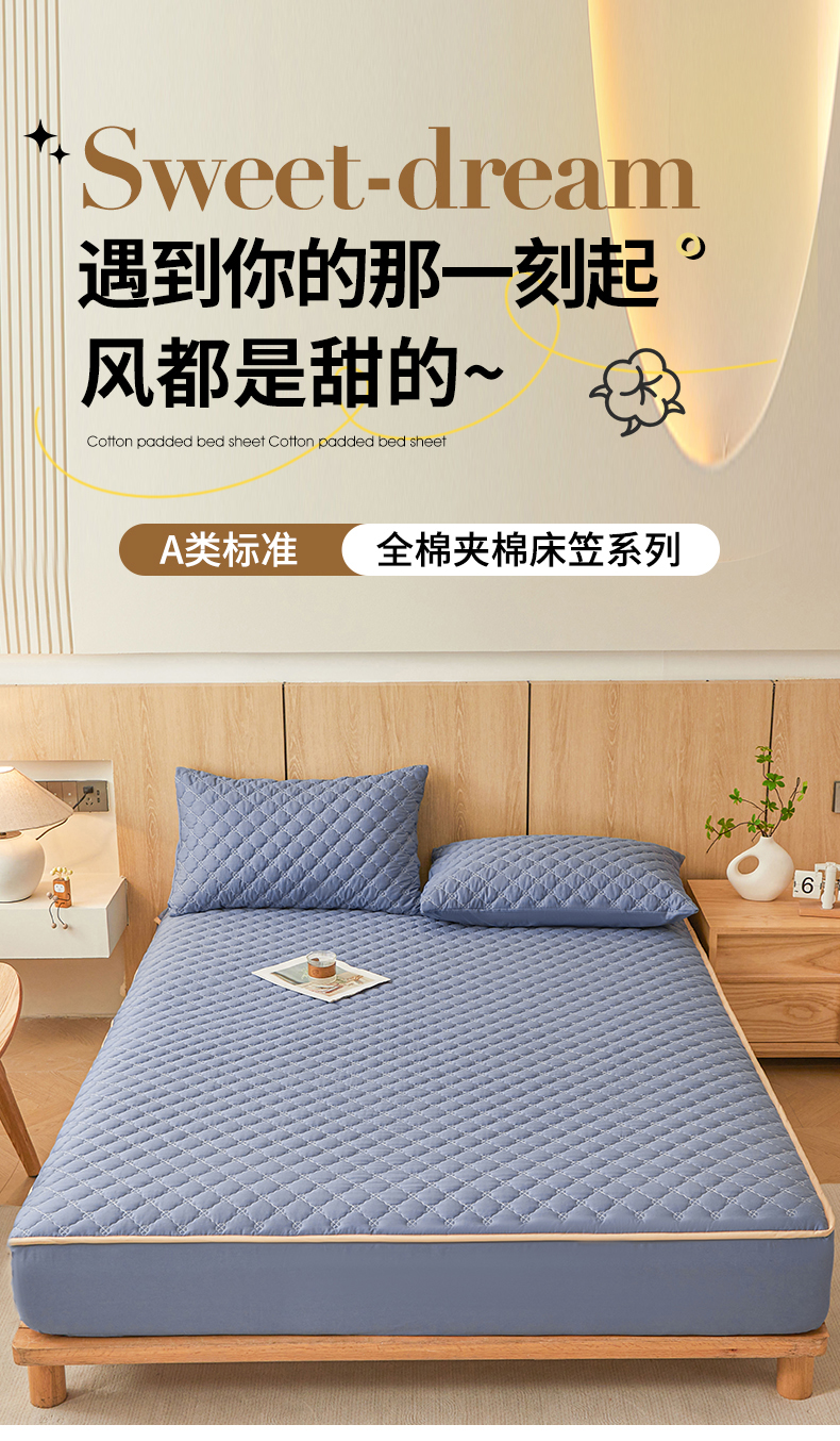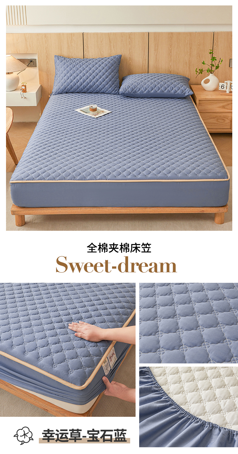 名优家纺 2025新款全棉夹棉床笠 幸运草-宝石蓝
