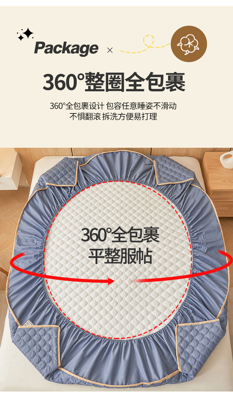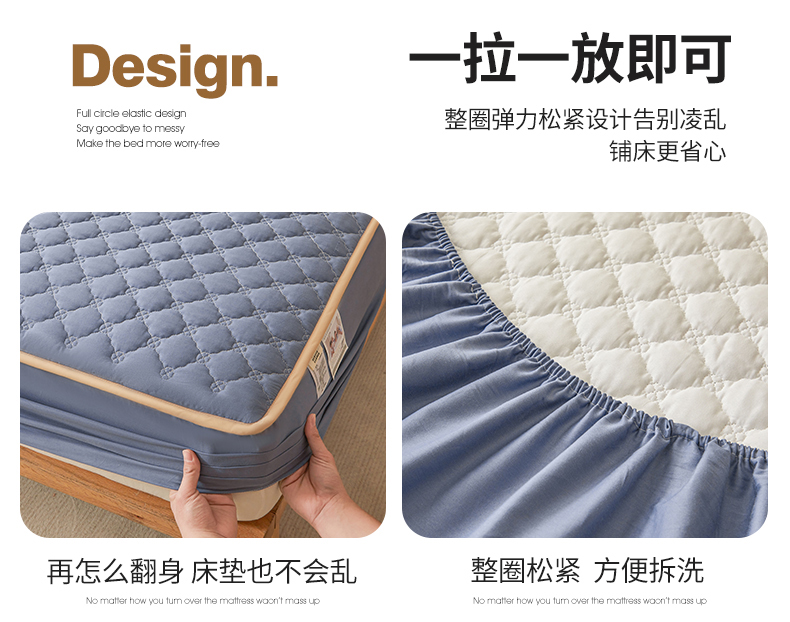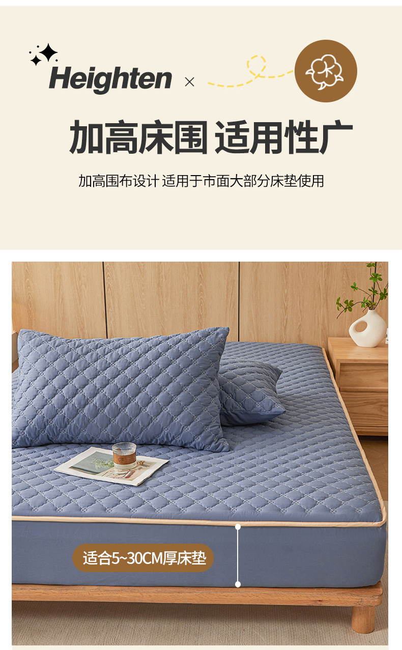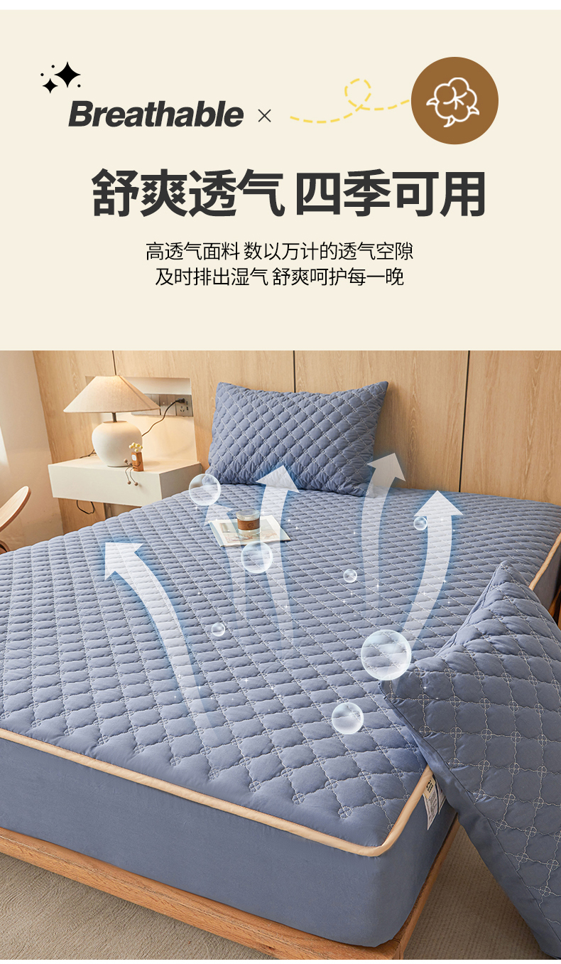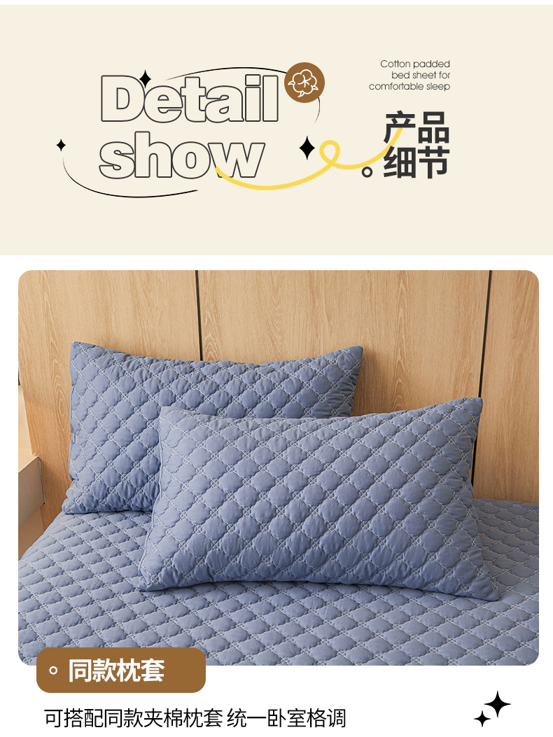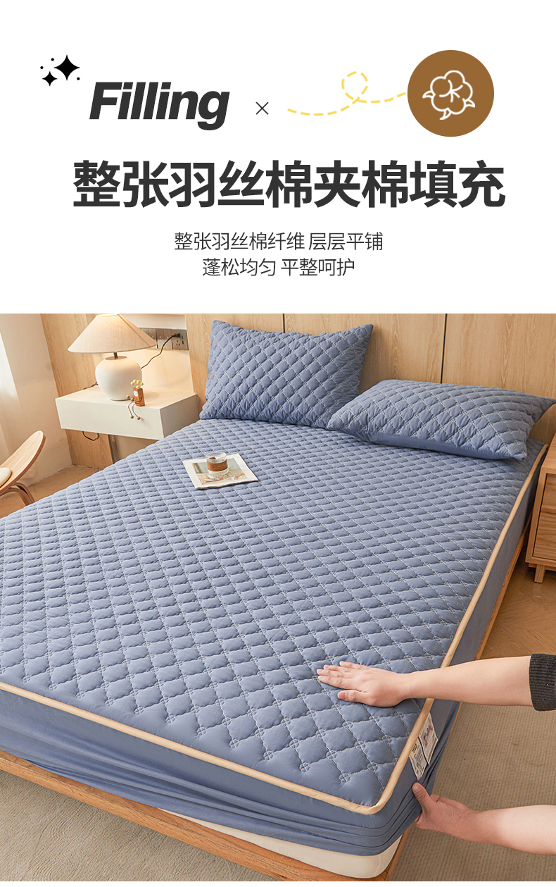 名优家纺 2025新款全棉夹棉床笠 幸运草-宝石蓝