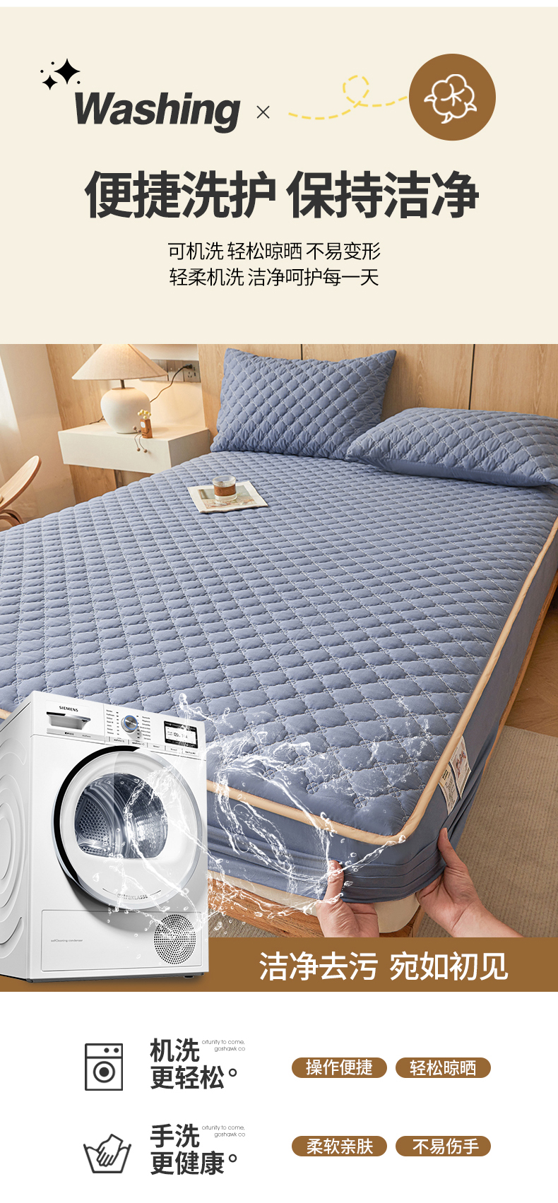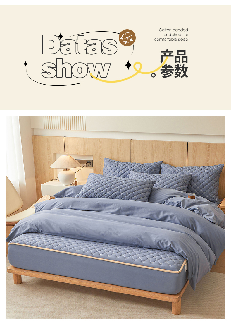 • 91家纺网 家纺一手货源 找家纺 名优家纺 2025新款全棉夹棉床笠 幸运草-宝石蓝