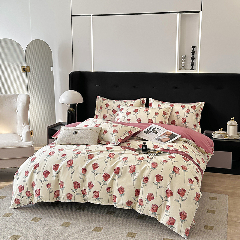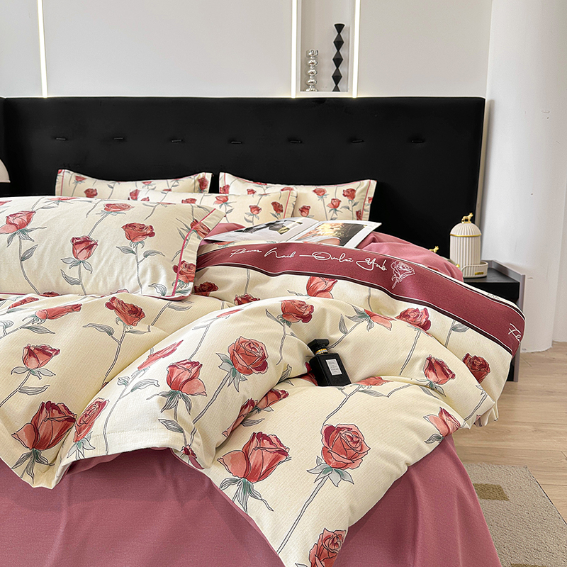 (买家秀 爆款花色不断货)A类母婴级纯棉磨毛四件套简约纯棉全棉磨毛四件套纯棉四件套全棉四件套花卉磨毛 情人玫瑰