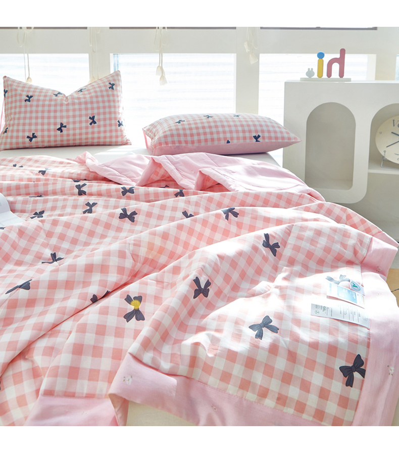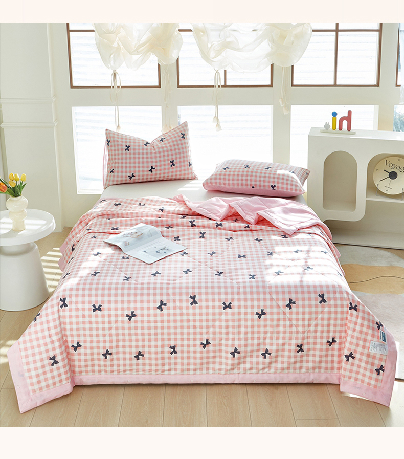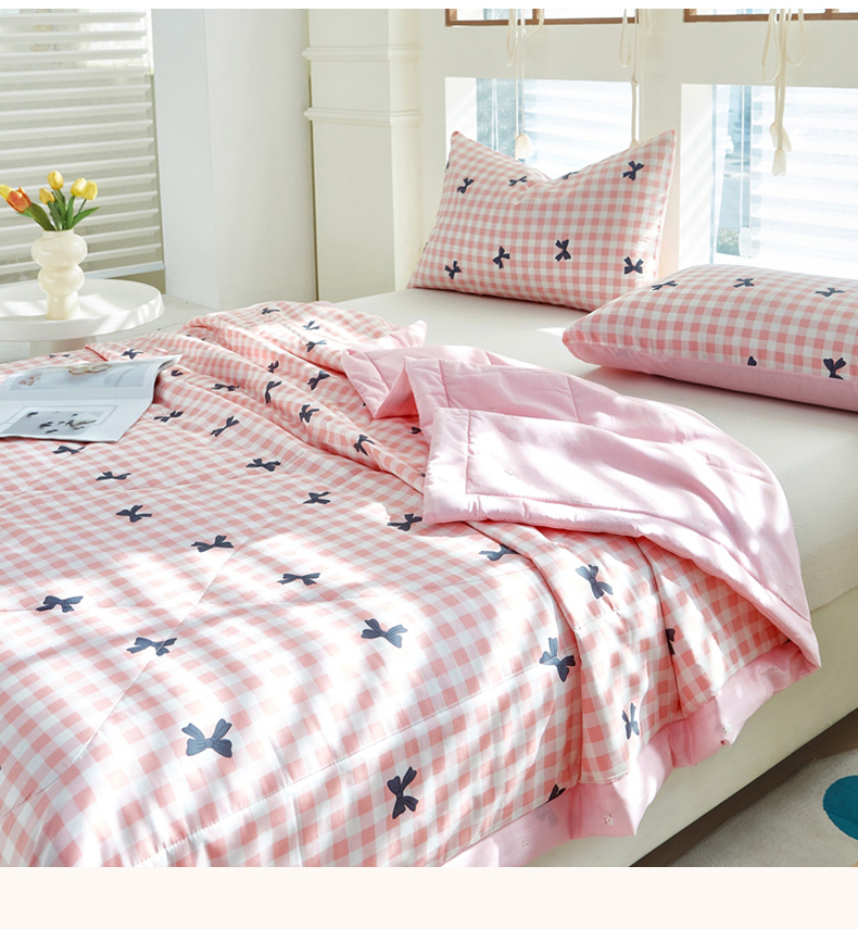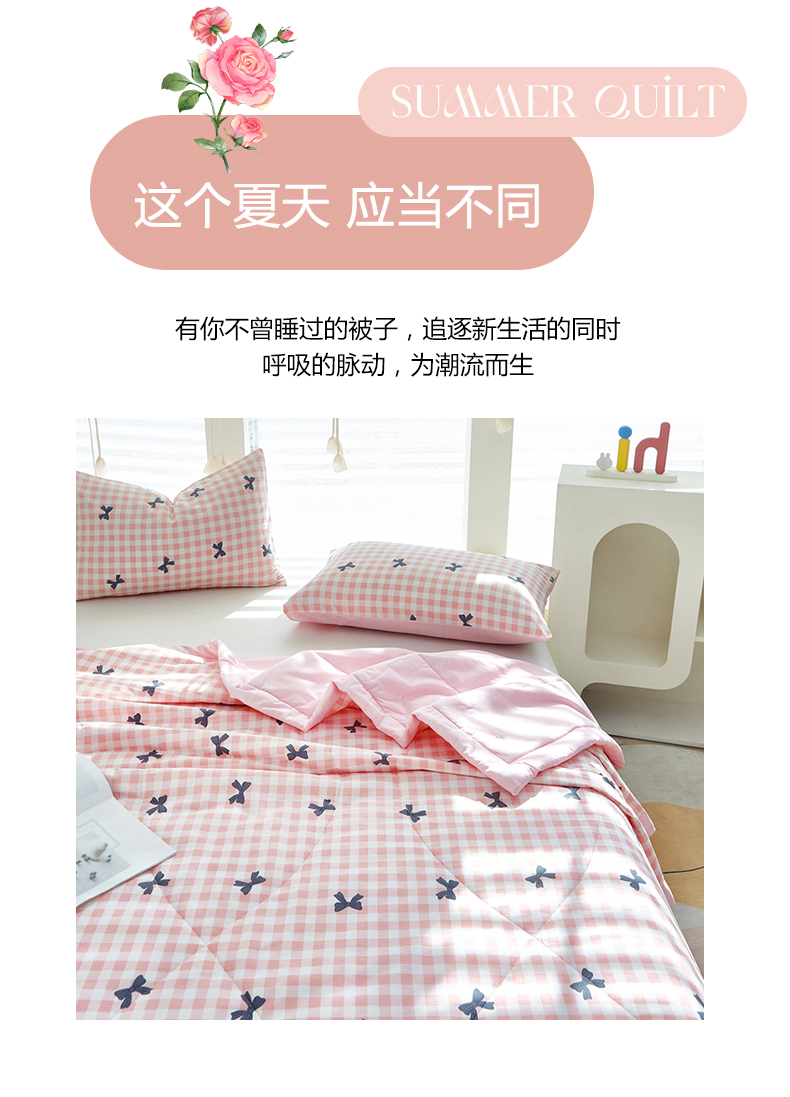 商品名称:黛妮雅 2025新款全棉印花夏被空调被 送买家秀 粉色蝴蝶结