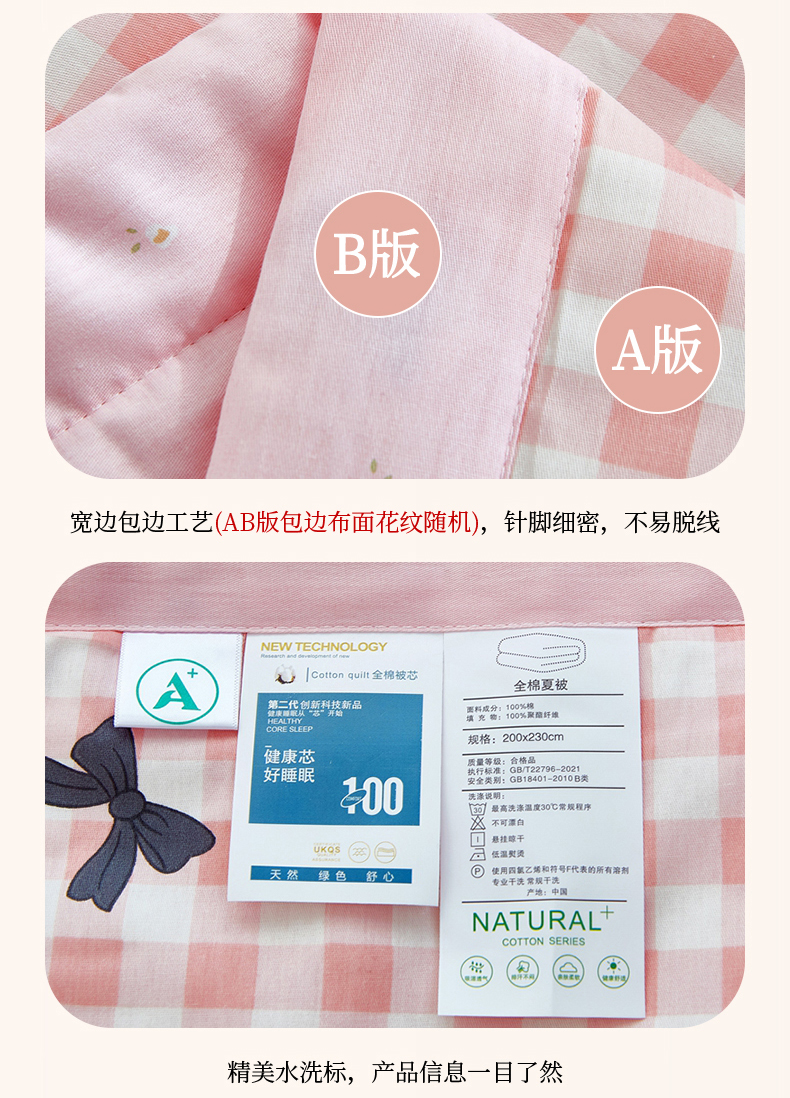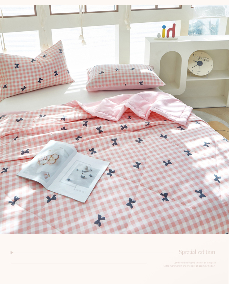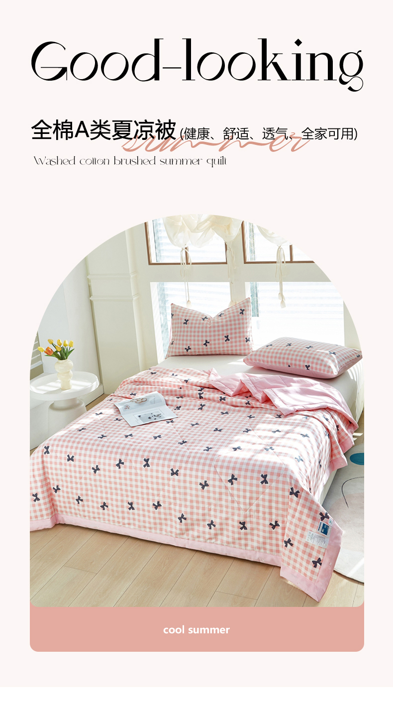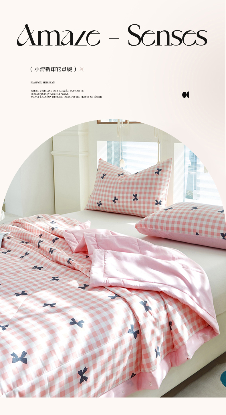 商品名称:黛妮雅 2025新款全棉印花夏被空调被 送买家秀 粉色蝴蝶结