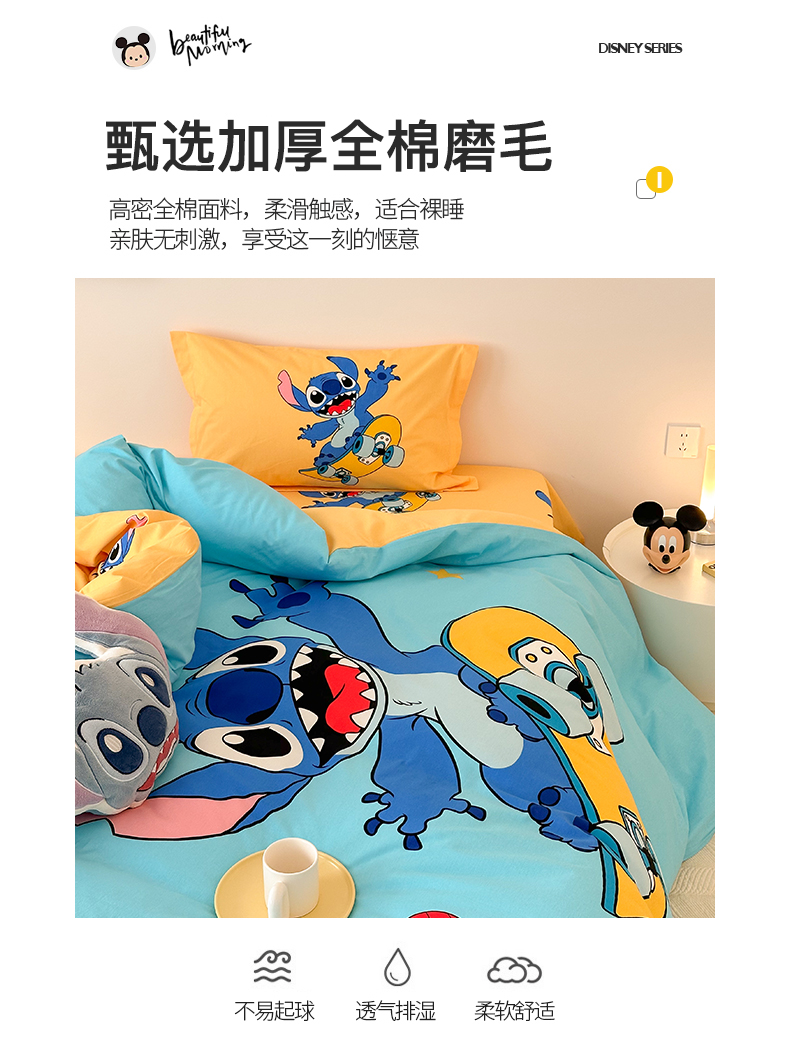 当前位置: 91家纺网 > 商品网购 > 床品套件 > 四件套 > 全棉普通四件套 > (买家秀爆款花色不断货)A类母婴级迪士尼卡通纯棉磨毛四件套简约纯棉全棉磨毛四件套纯棉四件套全棉四件套 哈罗史迪仔