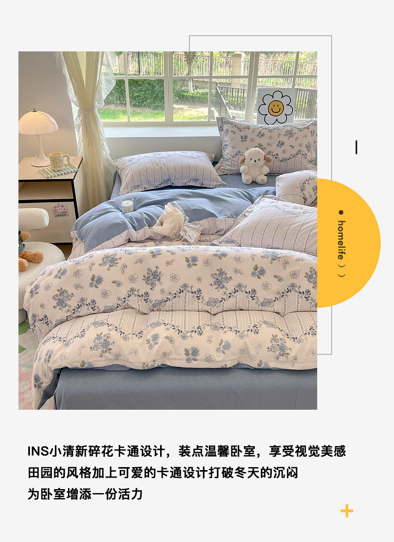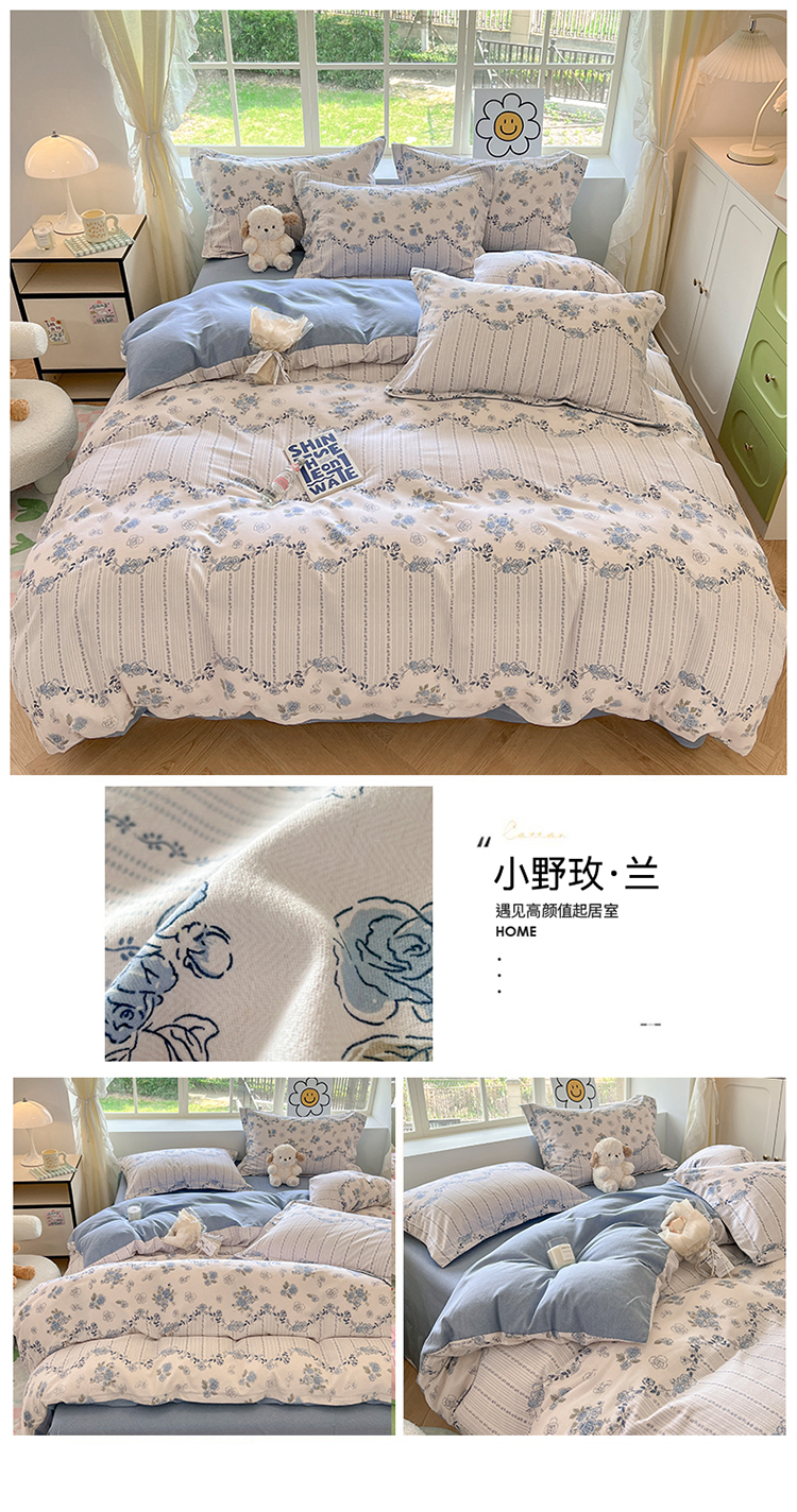 当前位置: 91家纺网 > 商品网购 > 床品套件 > 四件套 > 磨毛活性四件套 > (买家秀 爆款花色不断货)A类母婴级纯棉磨毛四件套简约可爱风纯棉四件套全棉四件套磨毛三件套 小野玫-兰