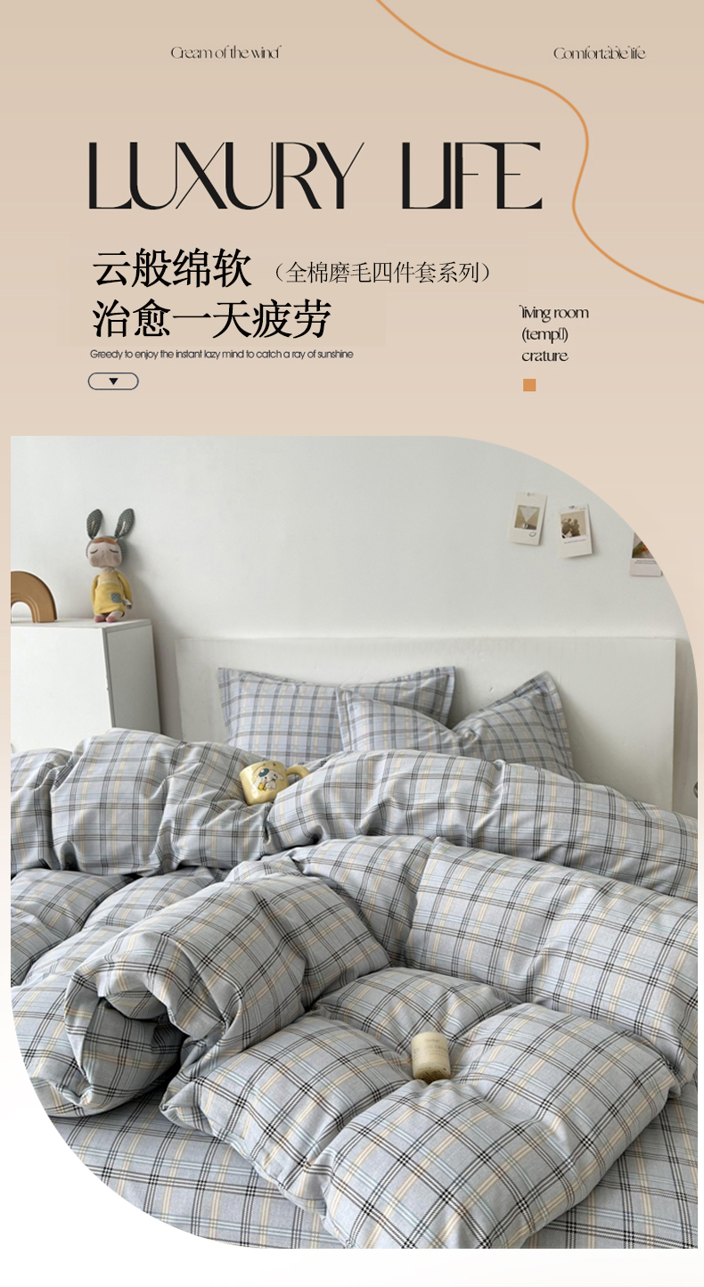 (总)(买家秀 爆款花色 不断货)A类母婴级纯棉磨毛四件套全棉磨毛三件套纯棉四件套全棉四件套磨毛被套三件套