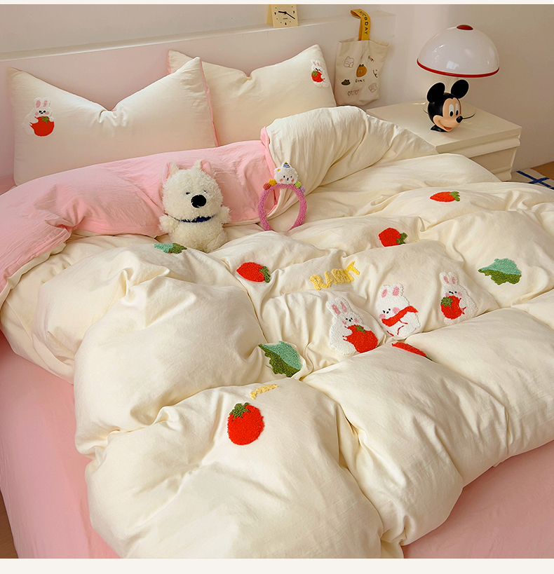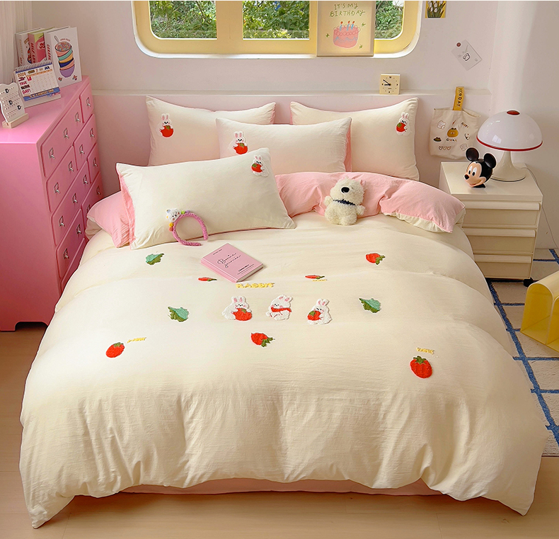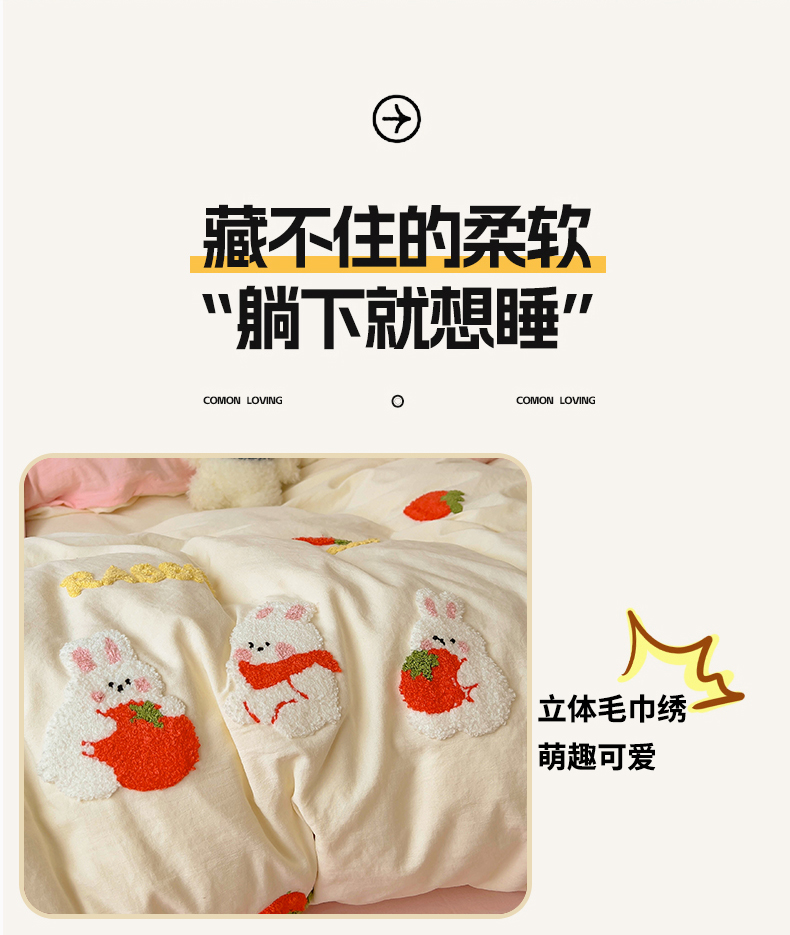 当前位置: 91家纺网 > 商品网购 > 床品套件 > 四件套 > 化纤普通四件套 > 易辰美 2025新款超柔水洗棉毛巾绣四件套 可爱免(米黄+粉玉)