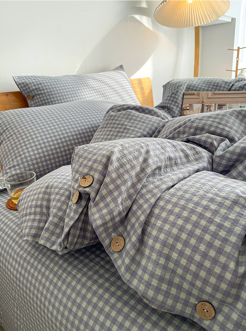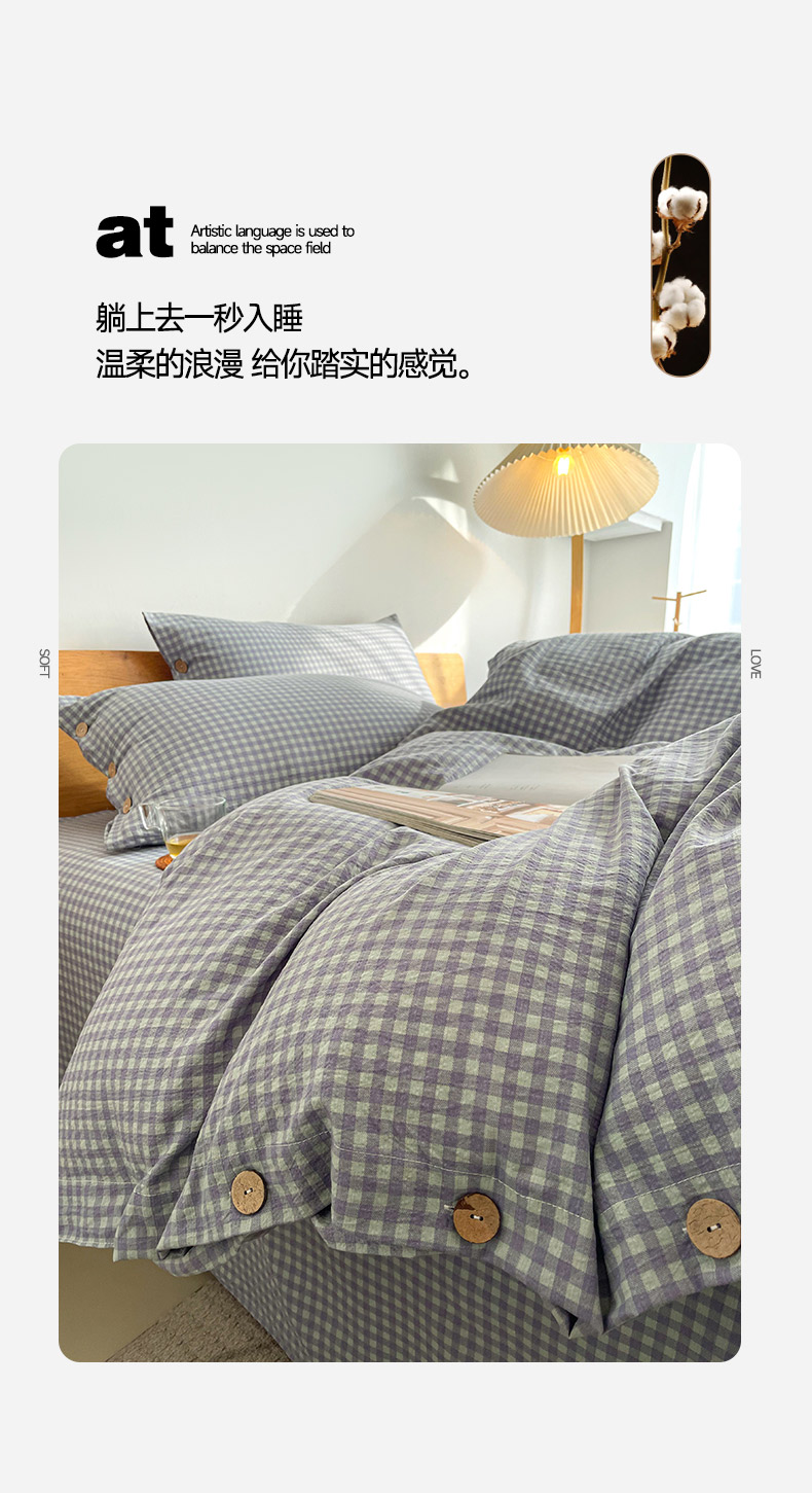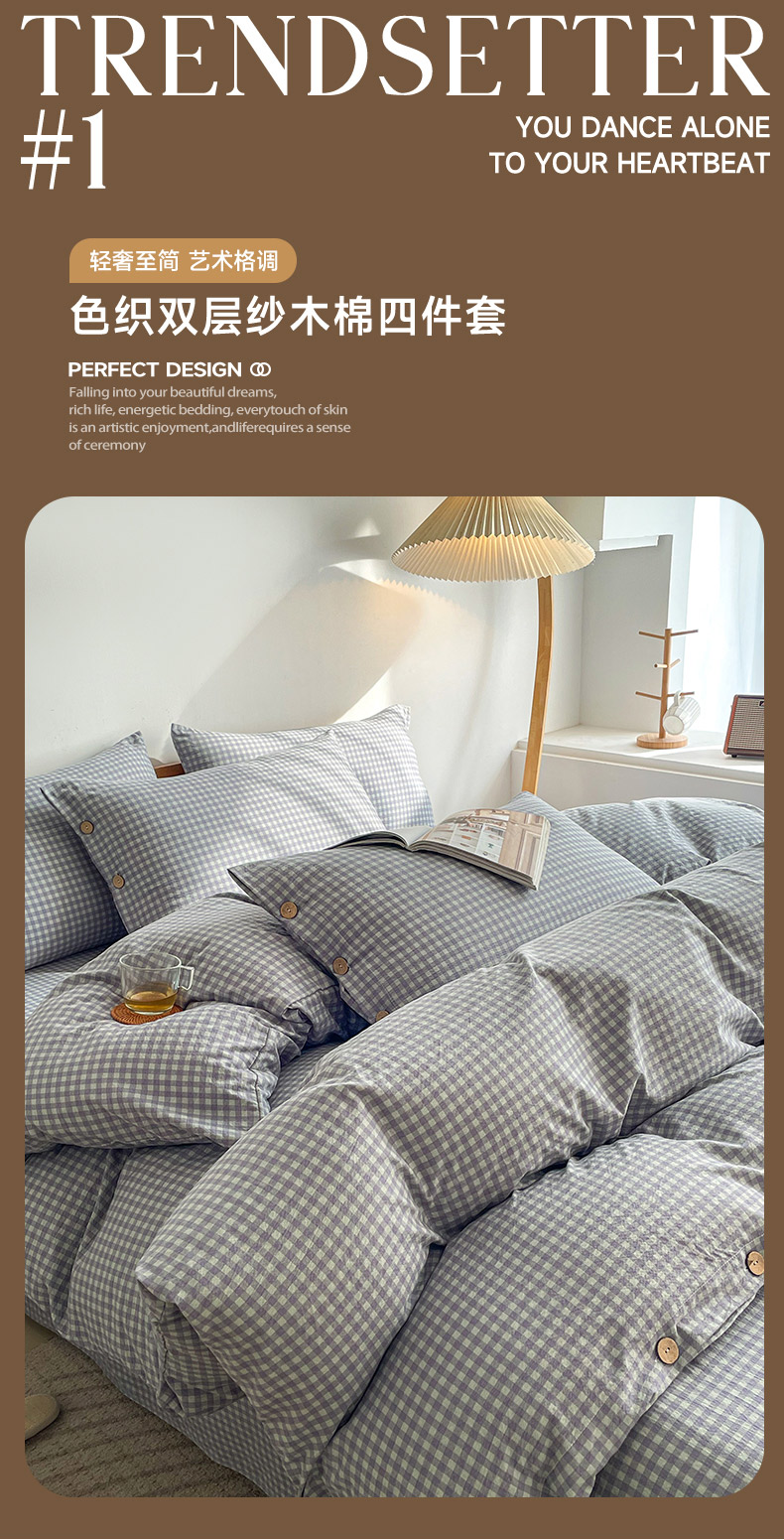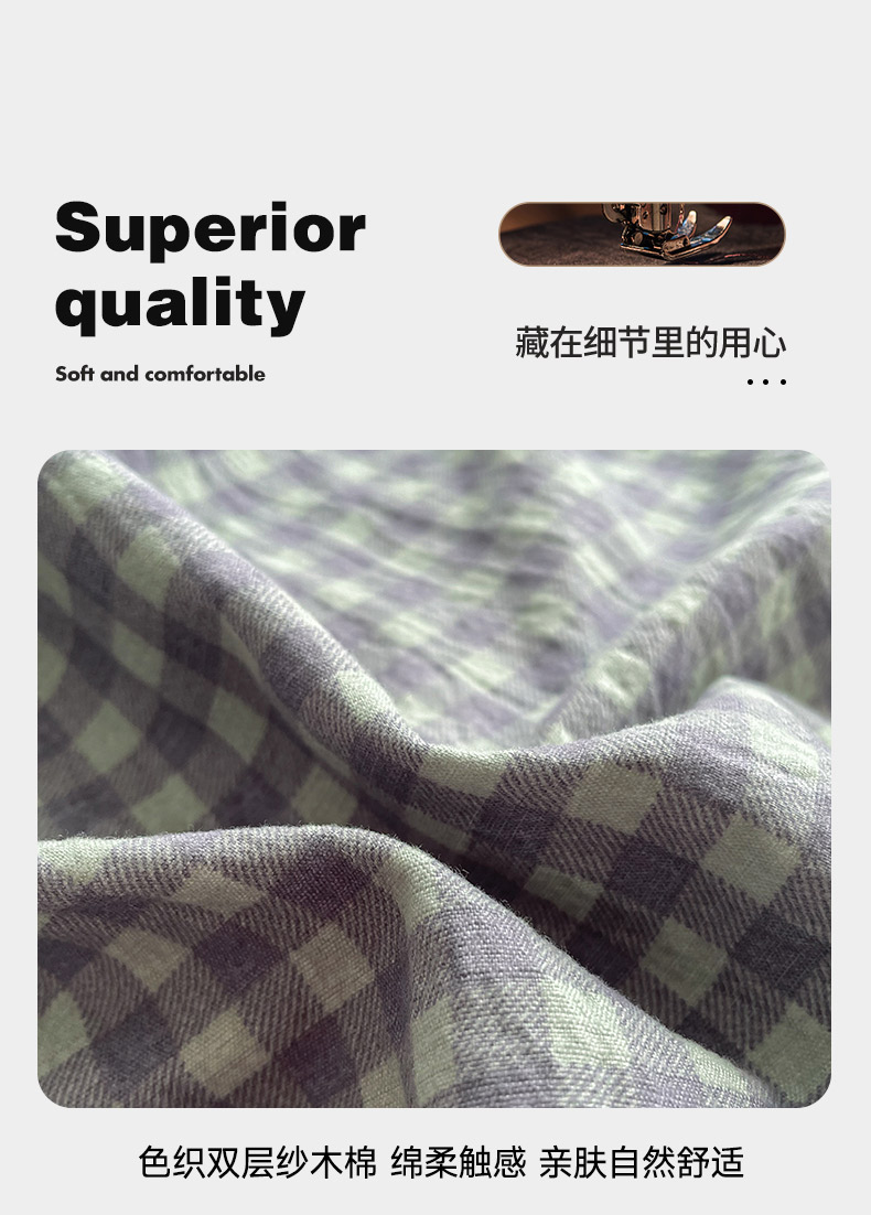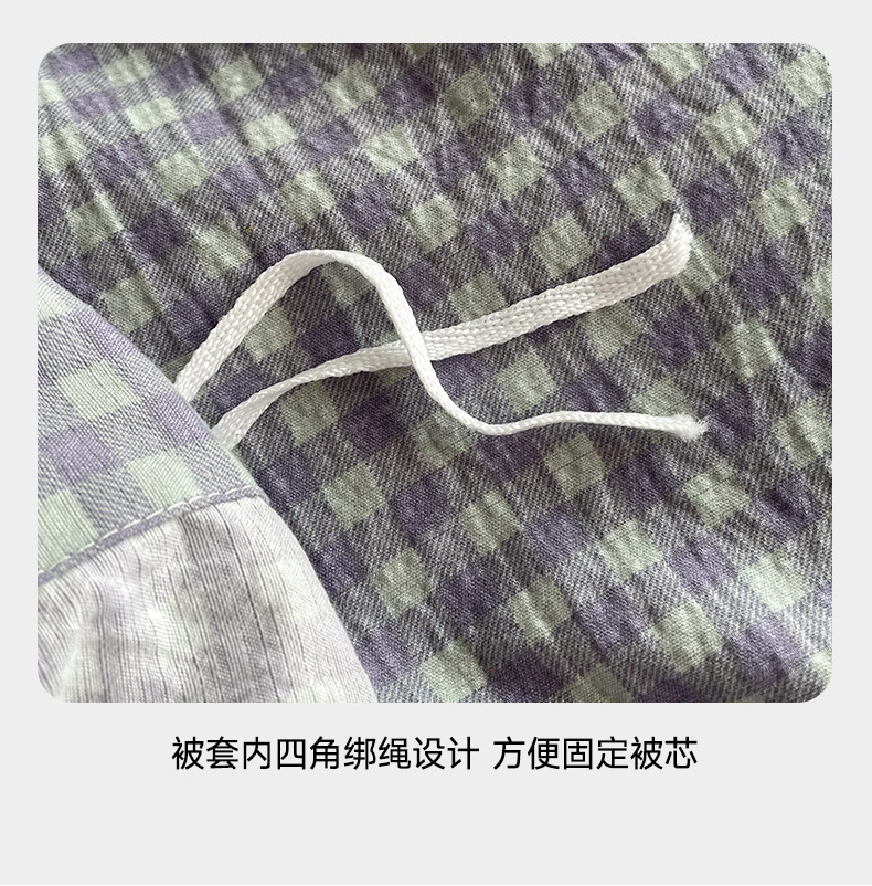 商品名称:(总)库里梦 2025新款无印条纹简约格子色织双层纱木棉四件套