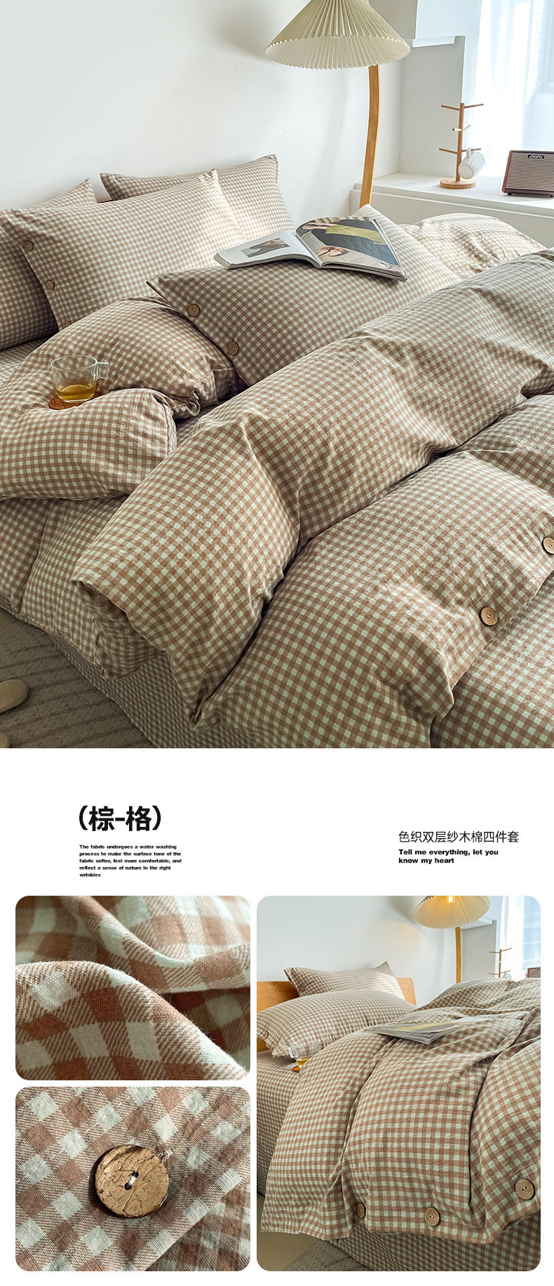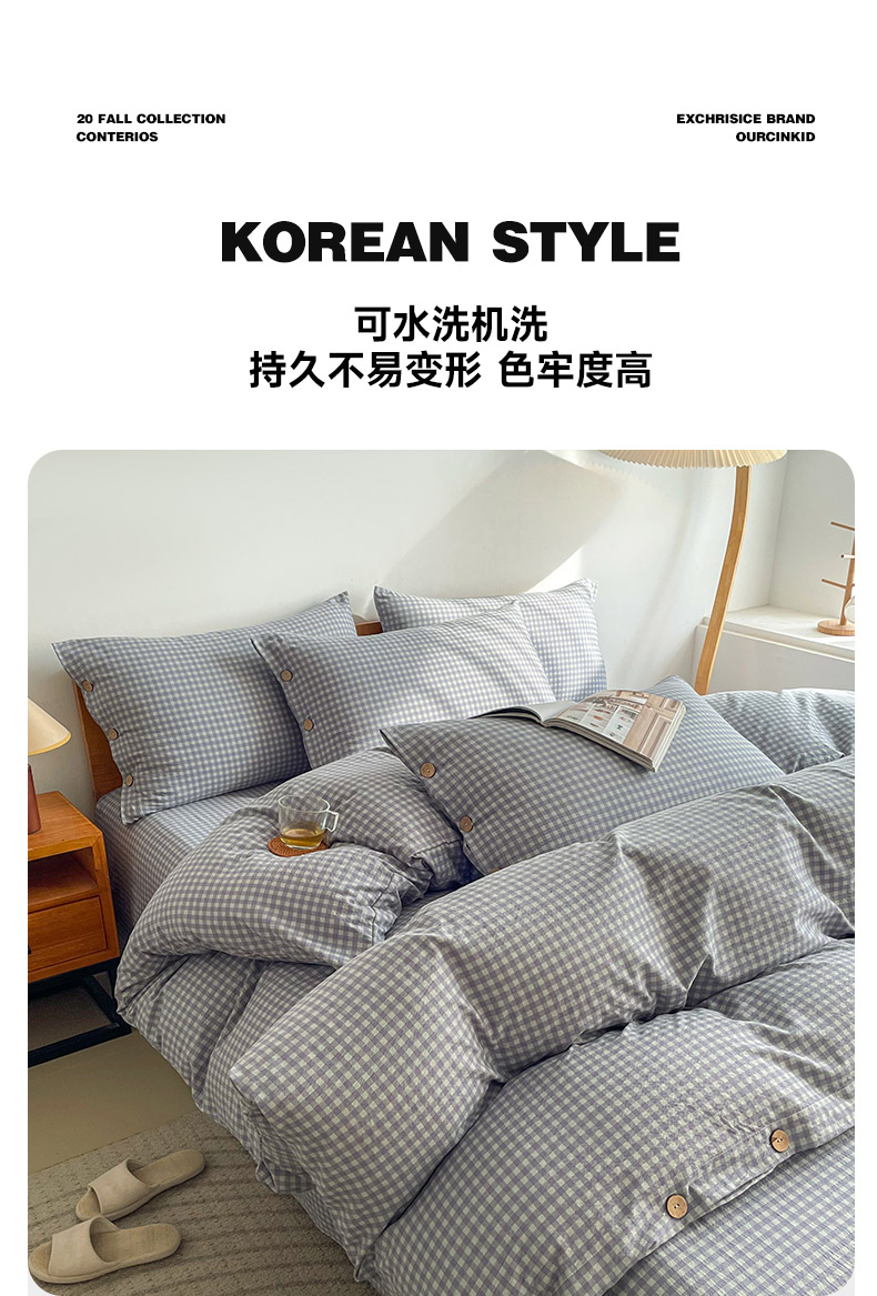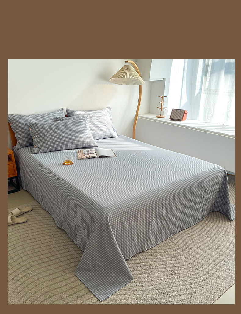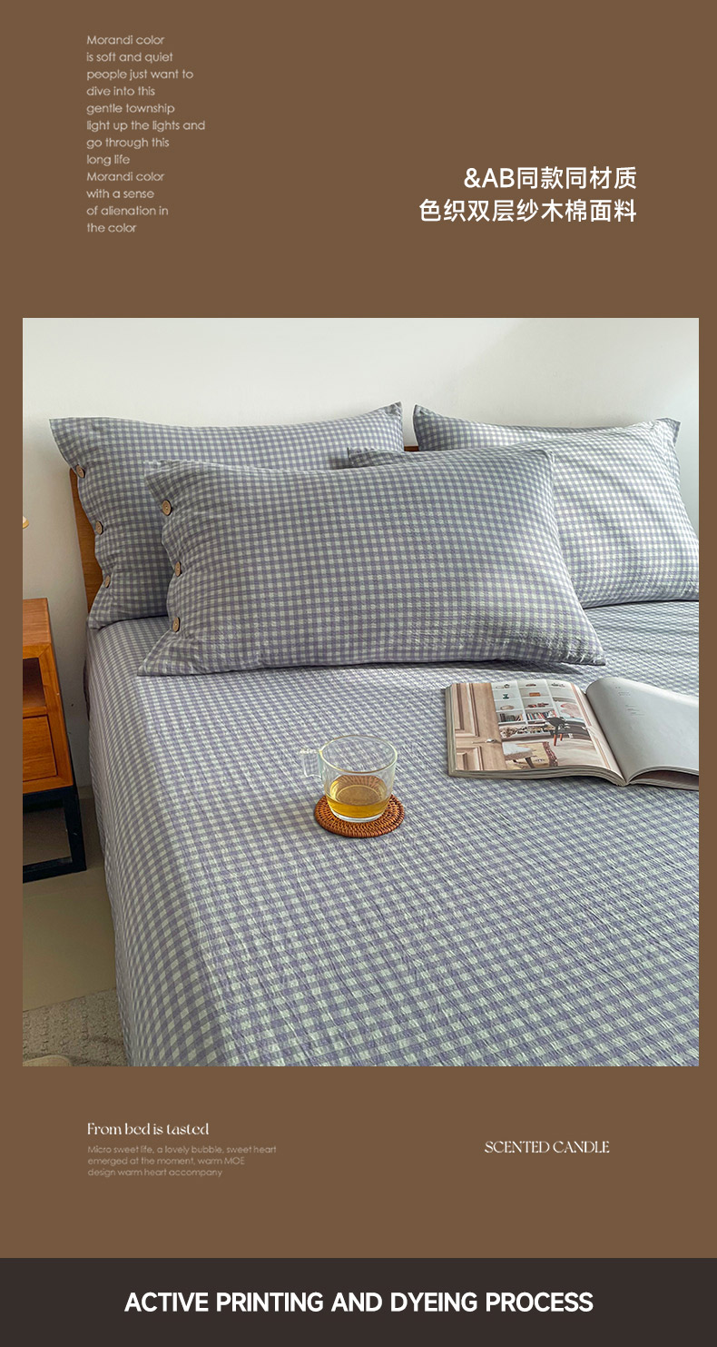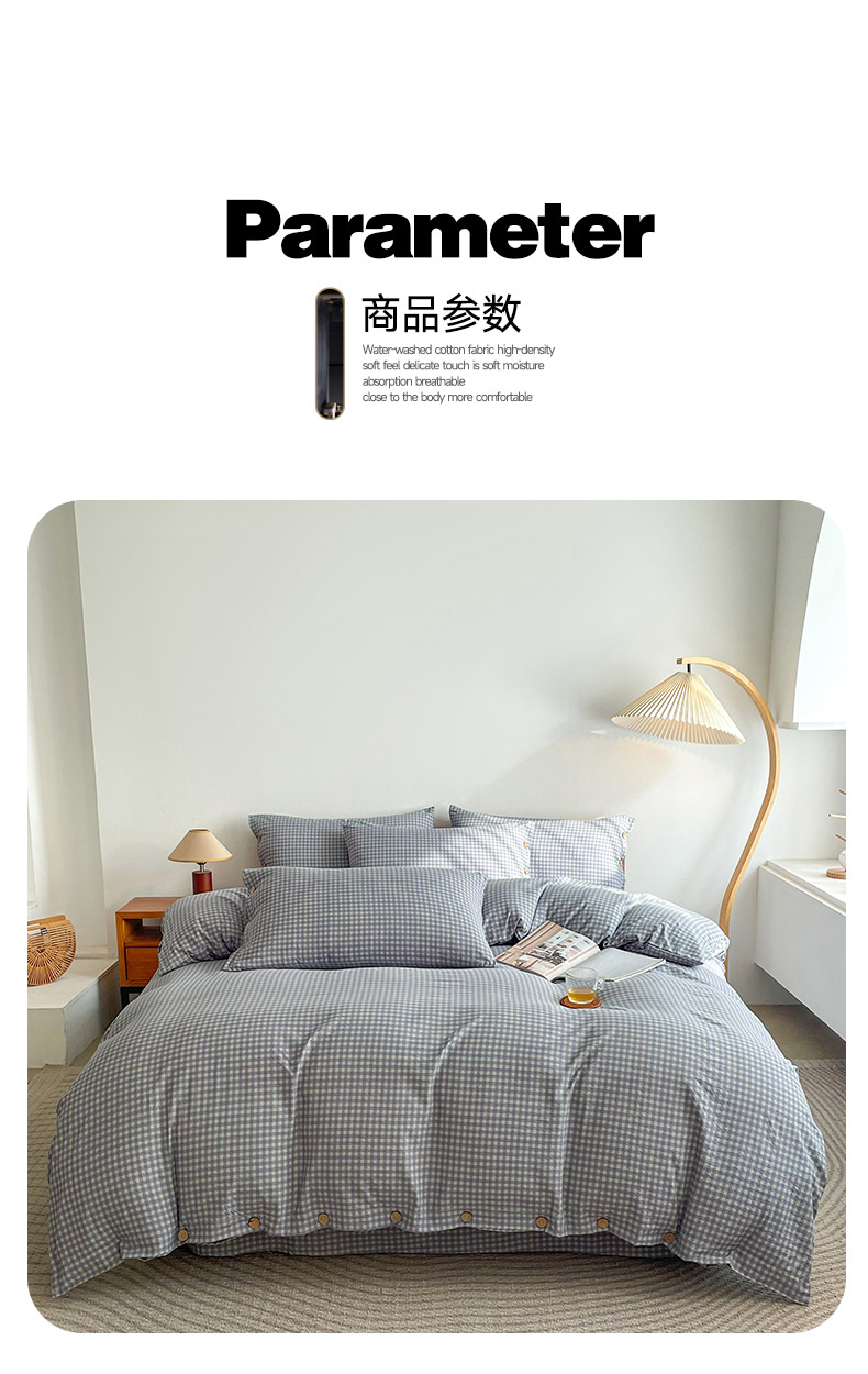商品名称:(总)库里梦 2025新款无印条纹简约格子色织双层纱木棉四件套