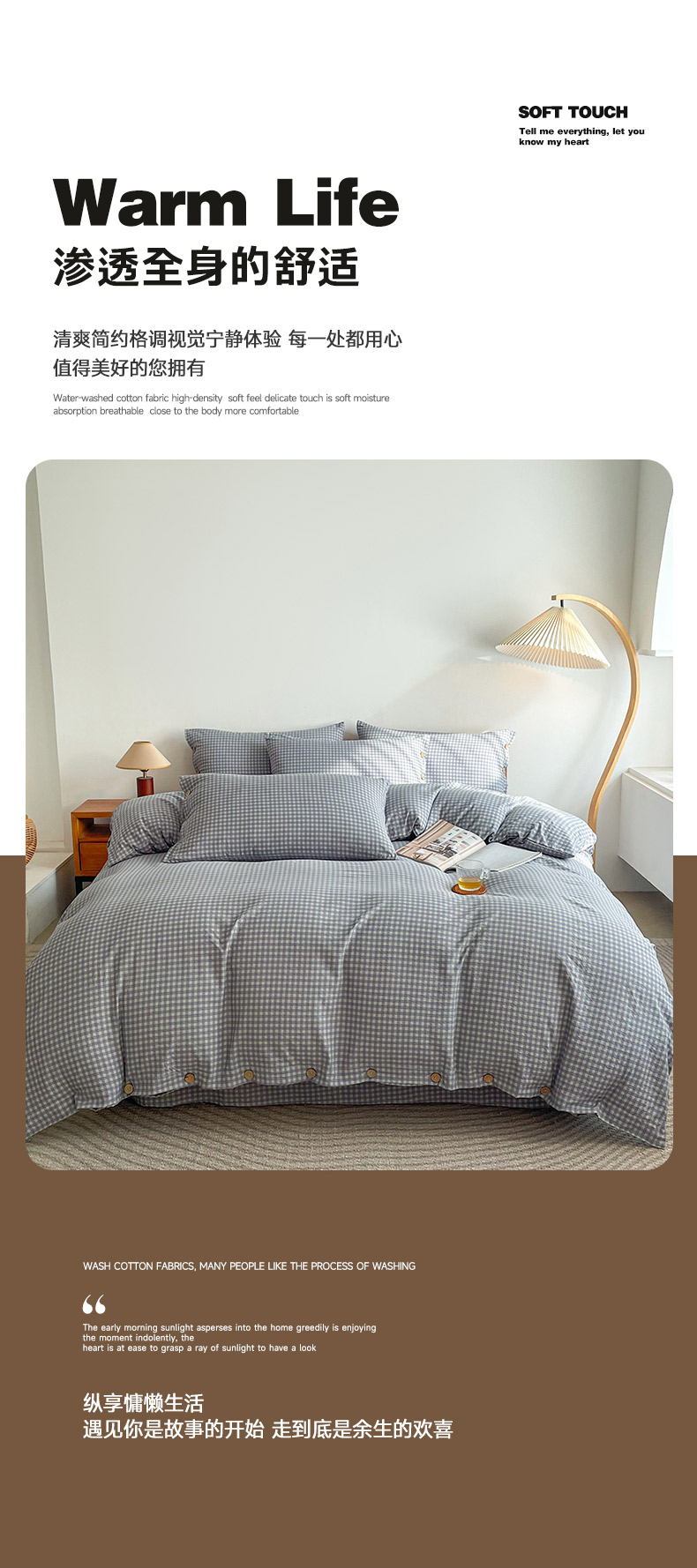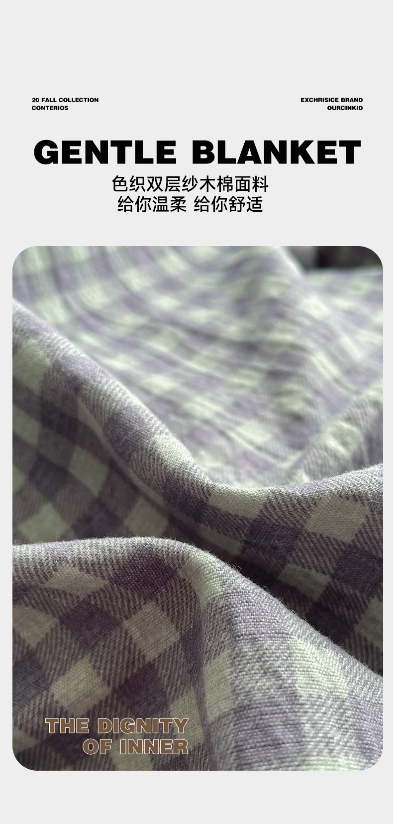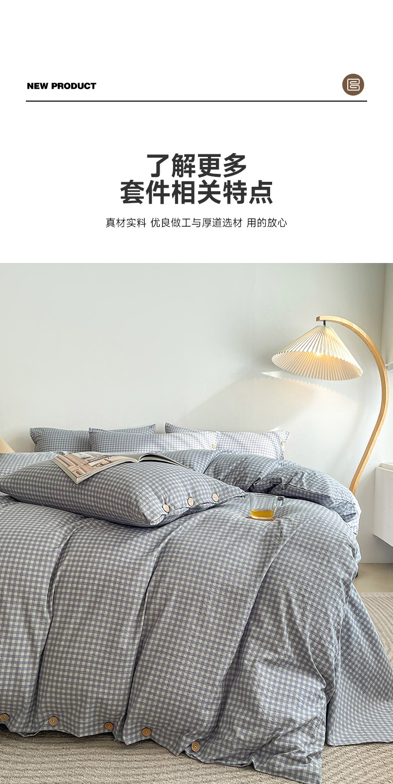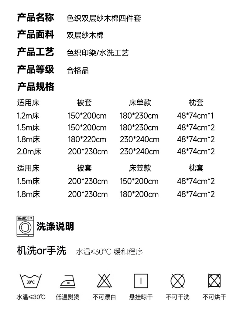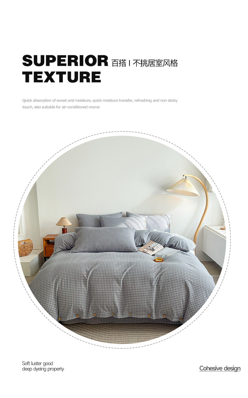商品名称:(总)库里梦 2025新款无印条纹简约格子色织双层纱木棉四件套