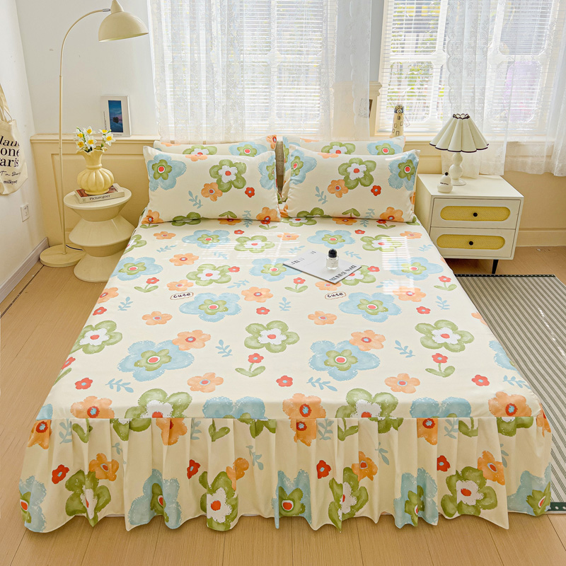 极梦家纺(支持定制) 2025新款春秋130克加厚植物羊绒磨毛印花单床裙三件套 云朵泡芙
