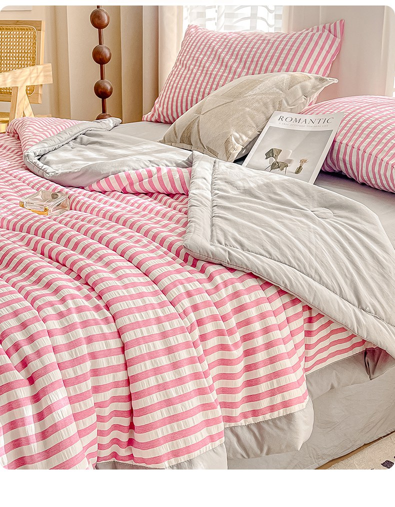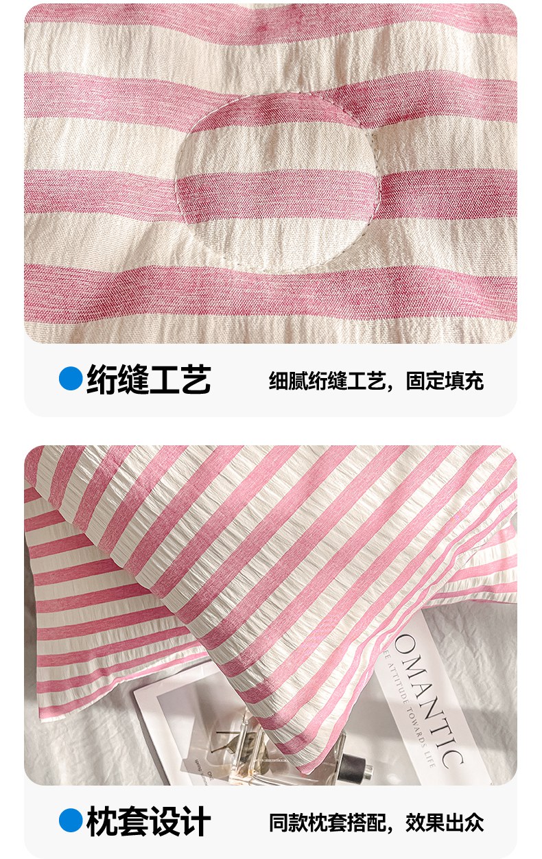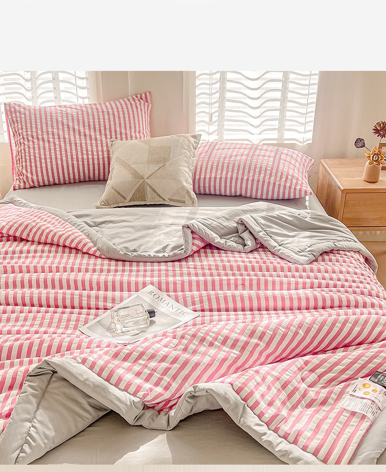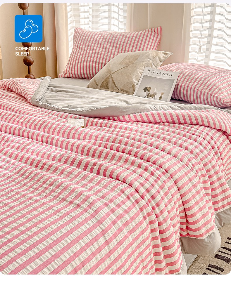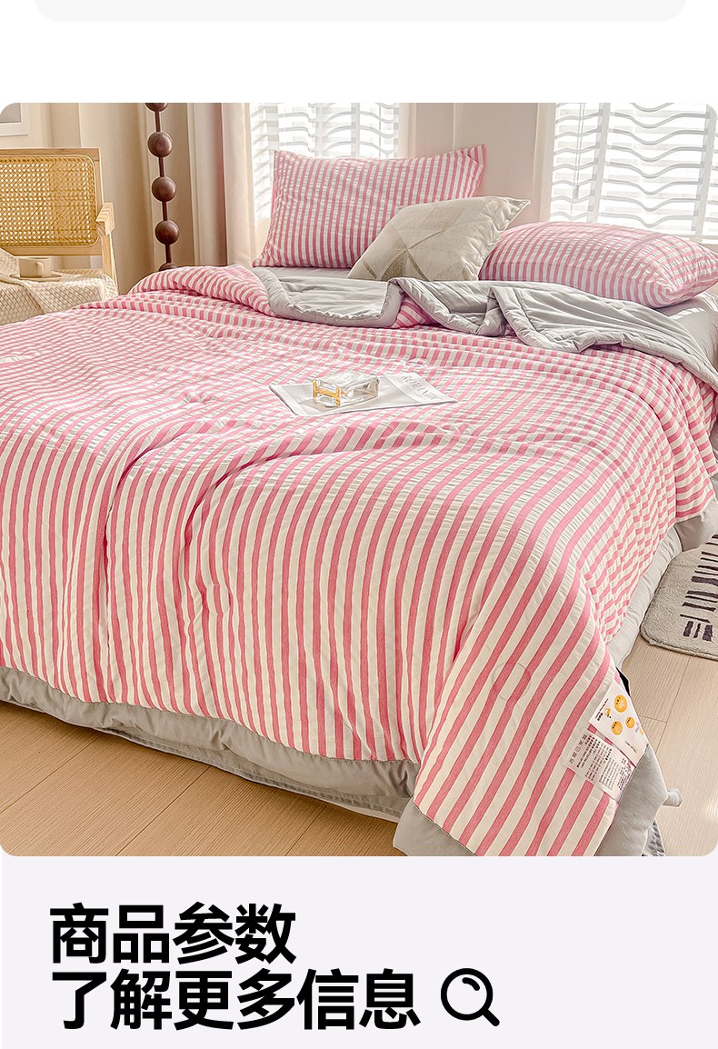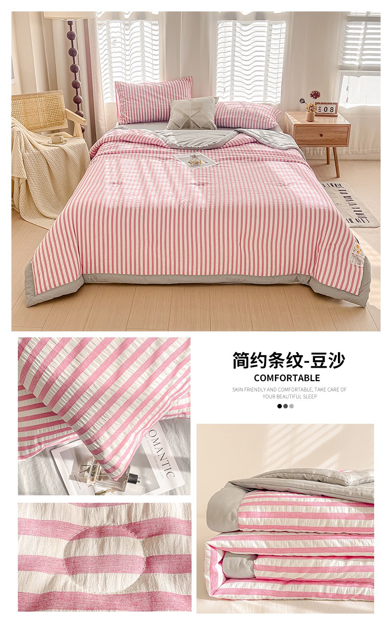 恬思语家纺 2025新款阳离子条纹泡泡纱大豆夏被 简约条纹-豆沙