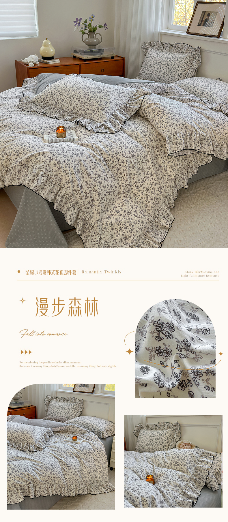 当前位置: 91家纺网 > 商品网购 > 床品套件 > 四件套 > 其它四件套 > 寐居家纺 2025新款韩版舒柔绵四件套 花边款-漫步森林