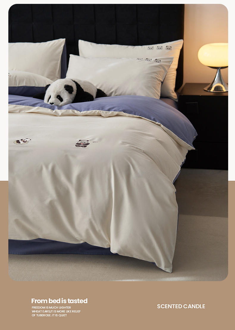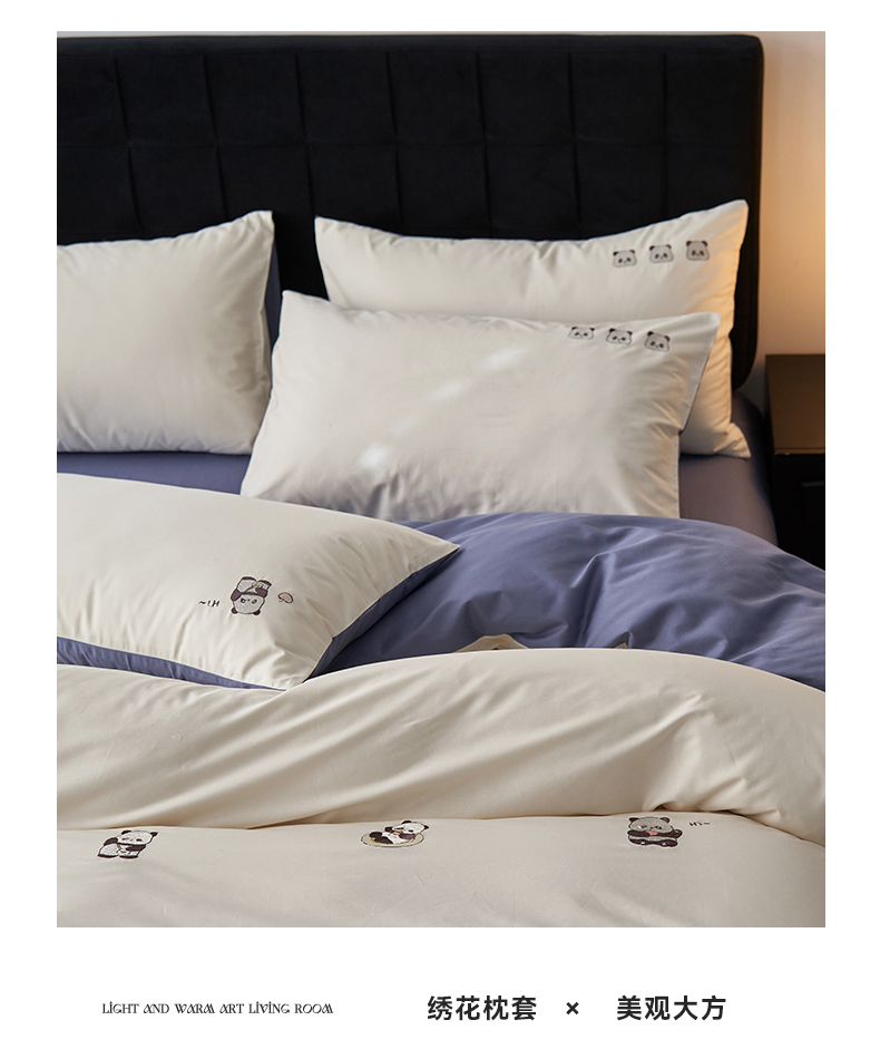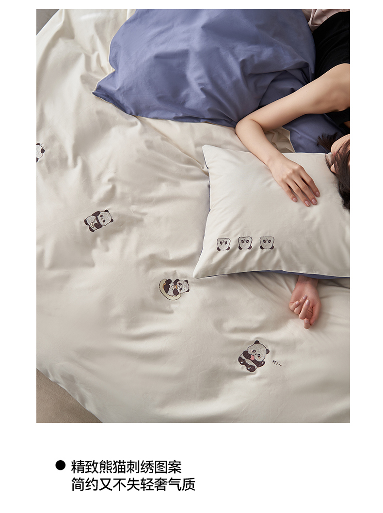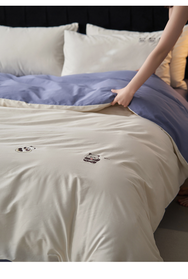 鼎飞家纺 2025新款全棉纯色双拼套件 奶白宝蓝