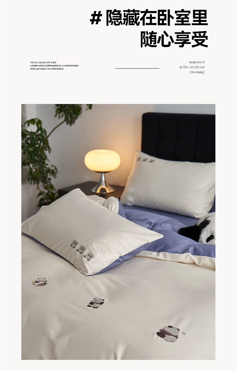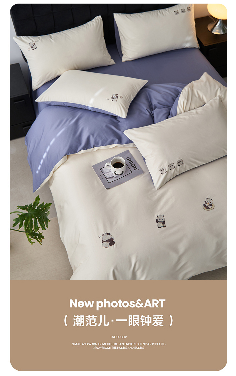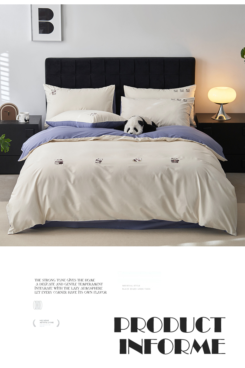 鼎飞家纺 2025新款全棉纯色双拼套件 奶白宝蓝