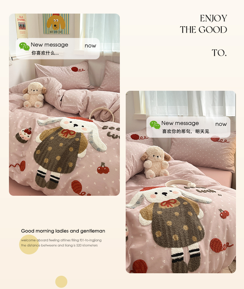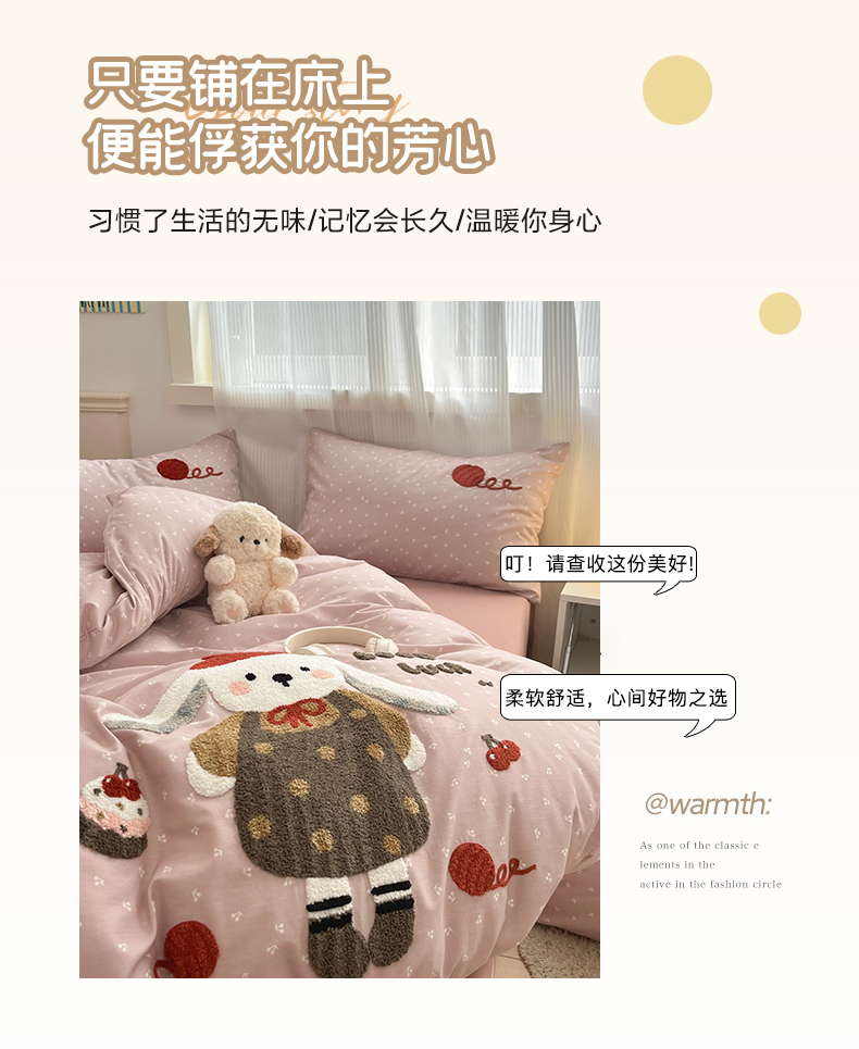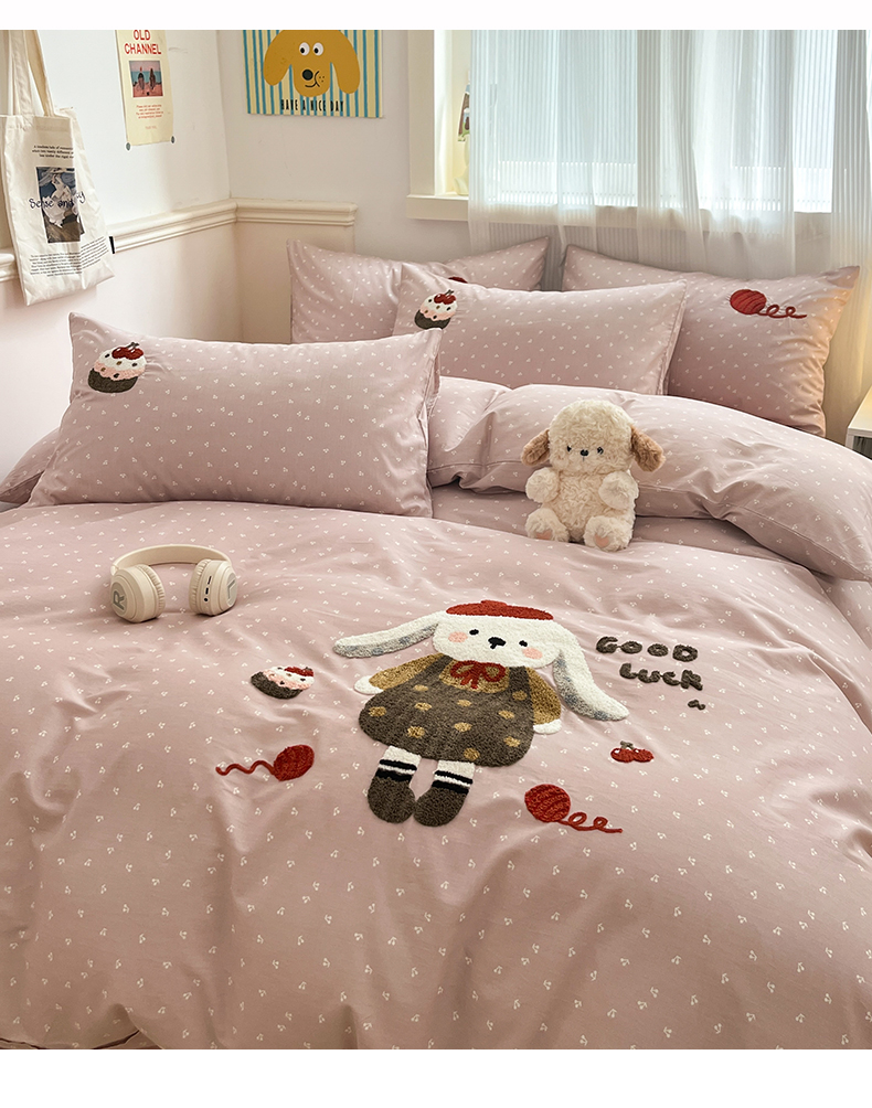 寐居家纺 2025新款全棉13070毛巾绣四件套 垂耳兔