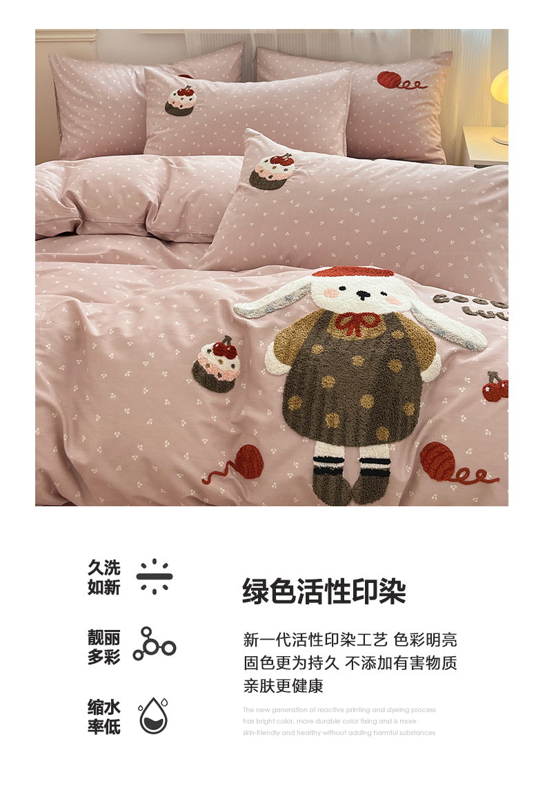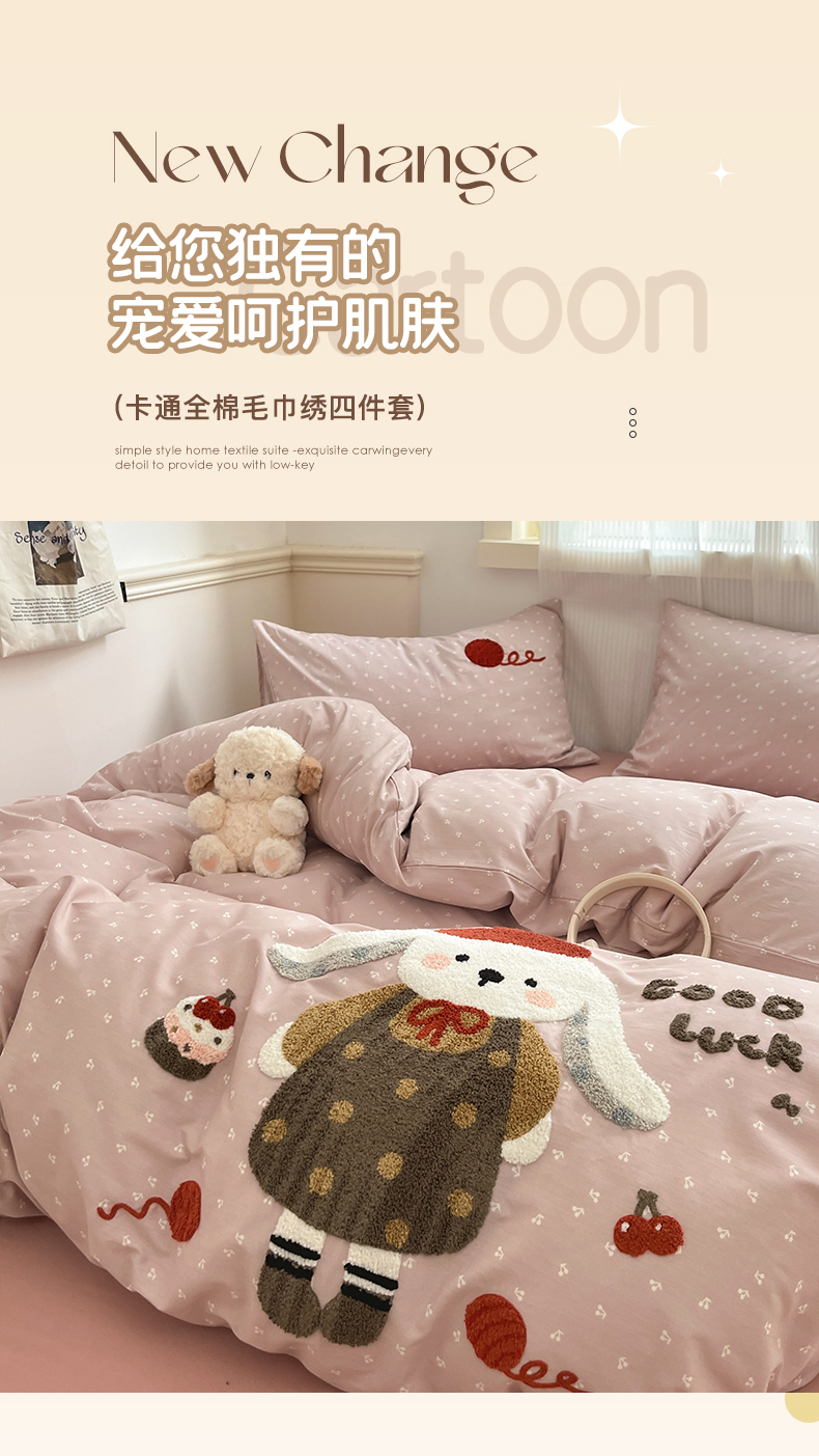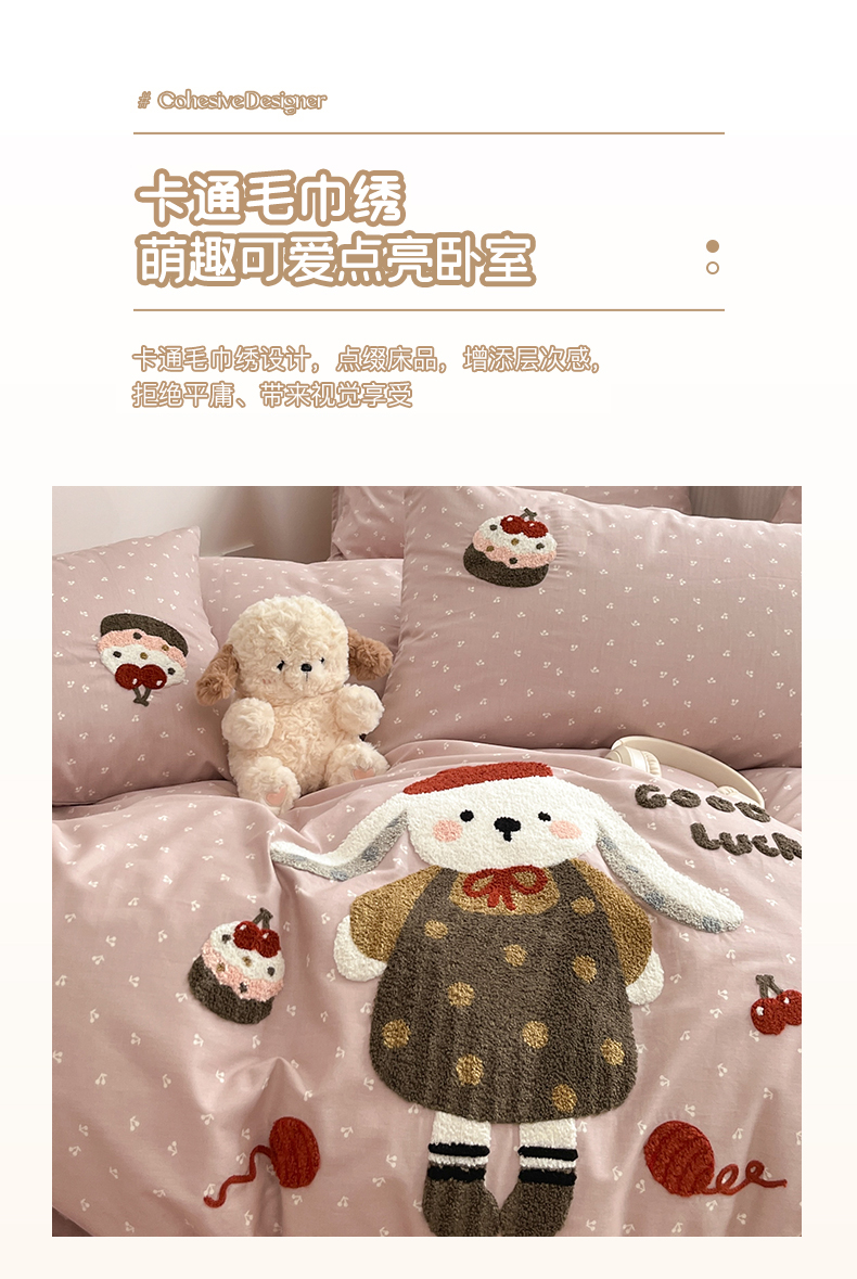 商品名称:寐居家纺 2025新款全棉13070毛巾绣四件套 垂耳兔