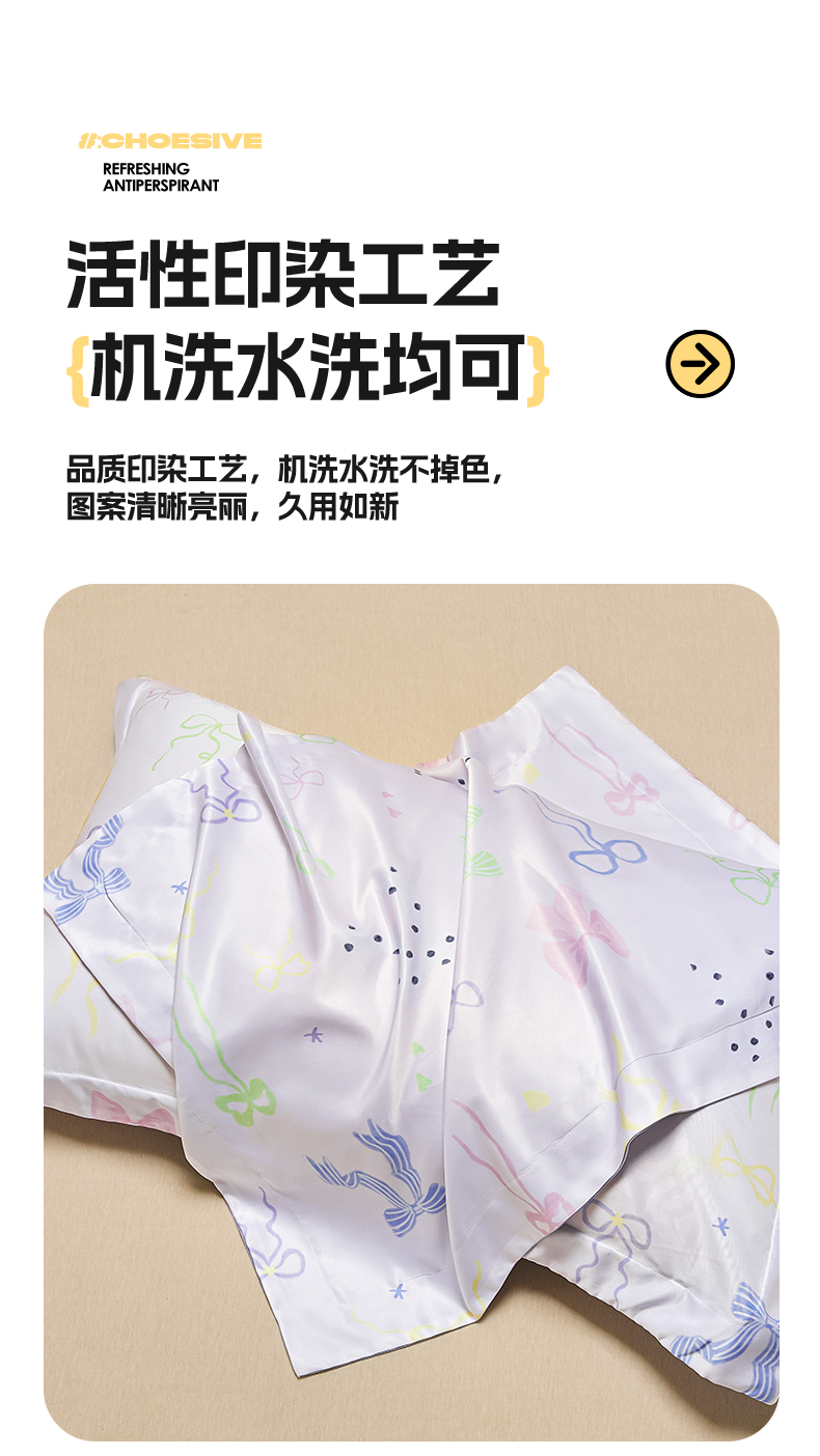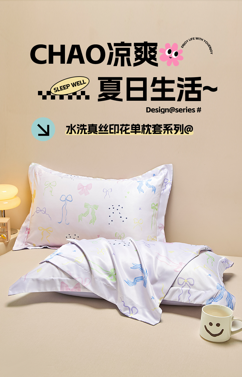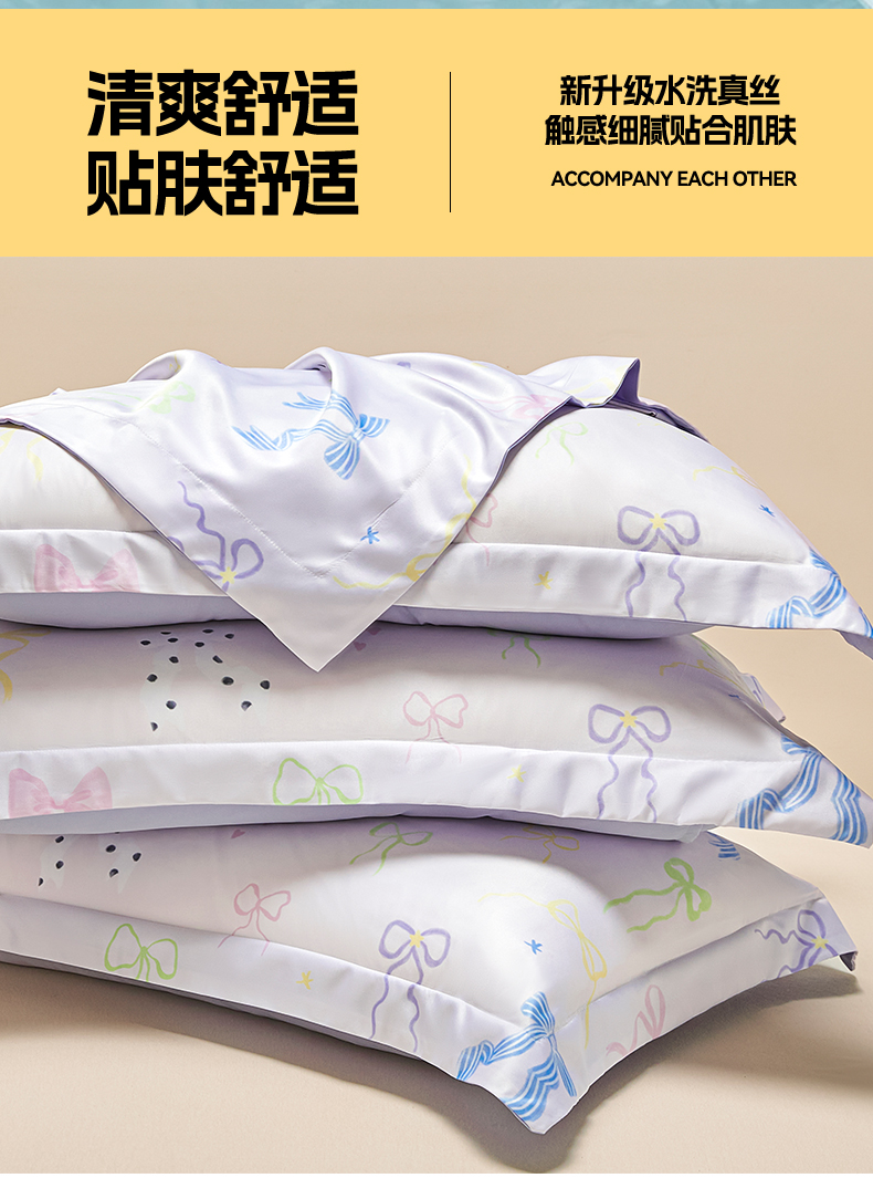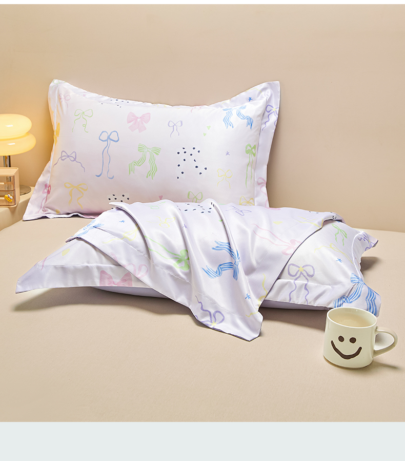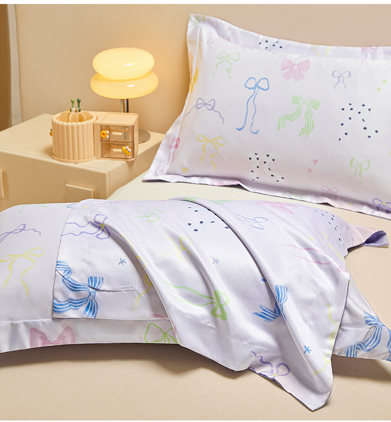 笙意家纺 2025新款水洗真丝数码印花卡通枕套 蝴蝶结