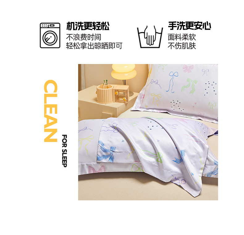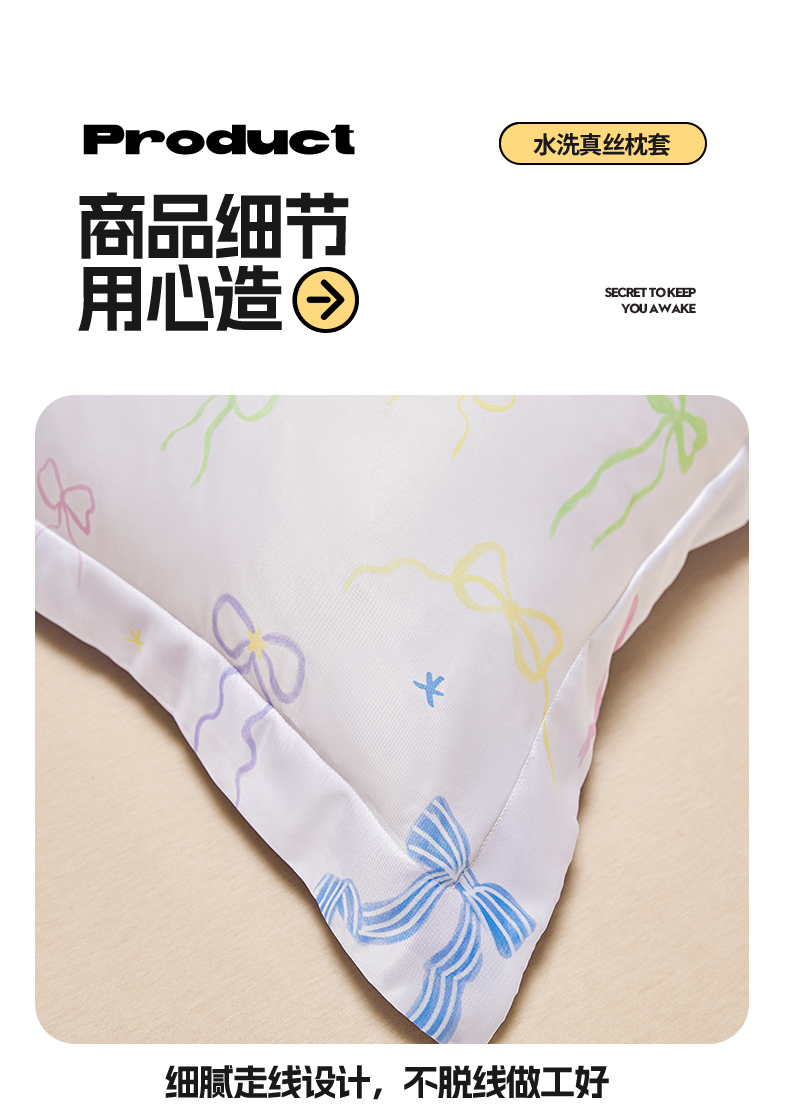 商品名称:笙意家纺 2025新款水洗真丝数码印花卡通枕套 蝴蝶结