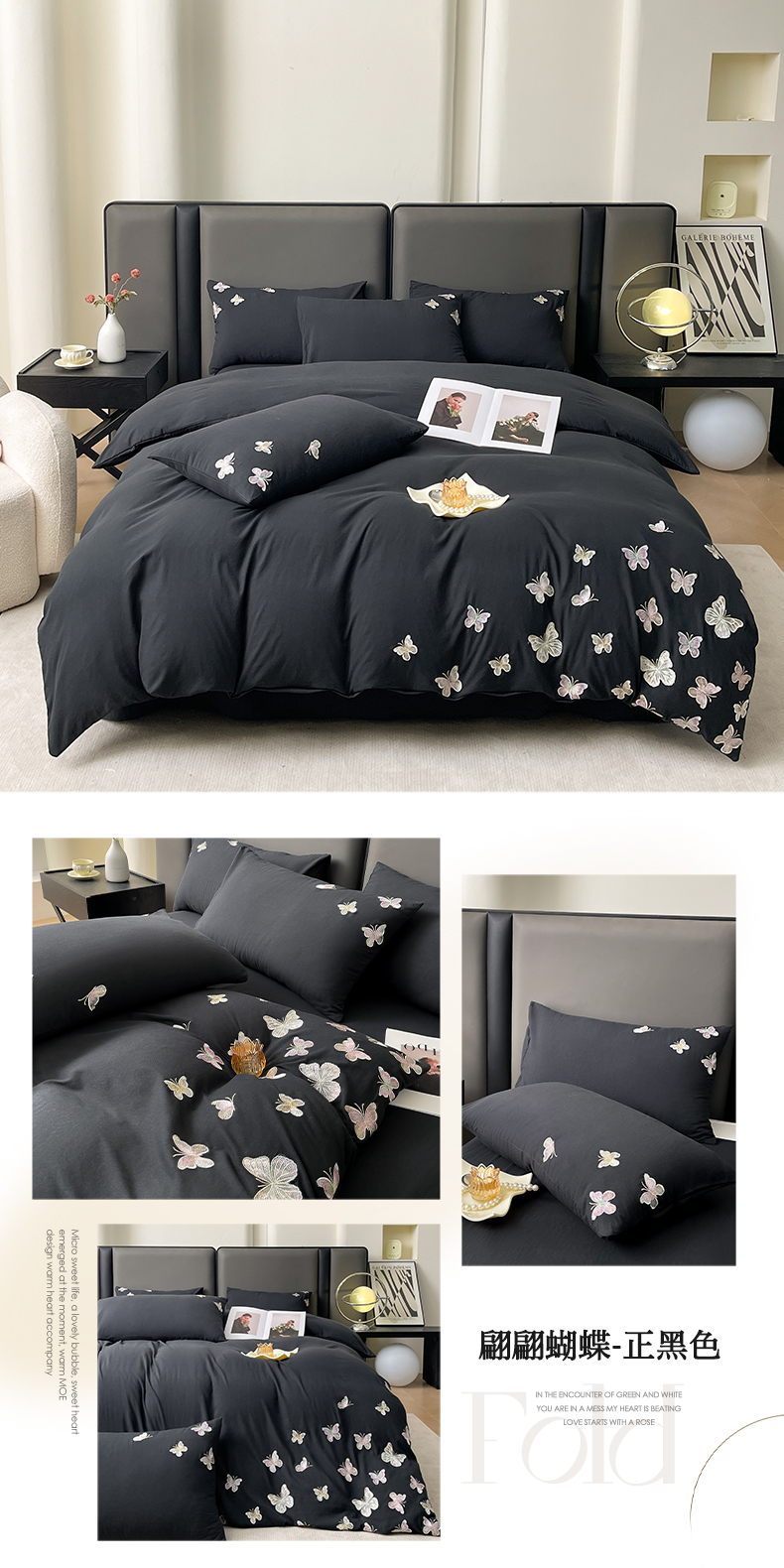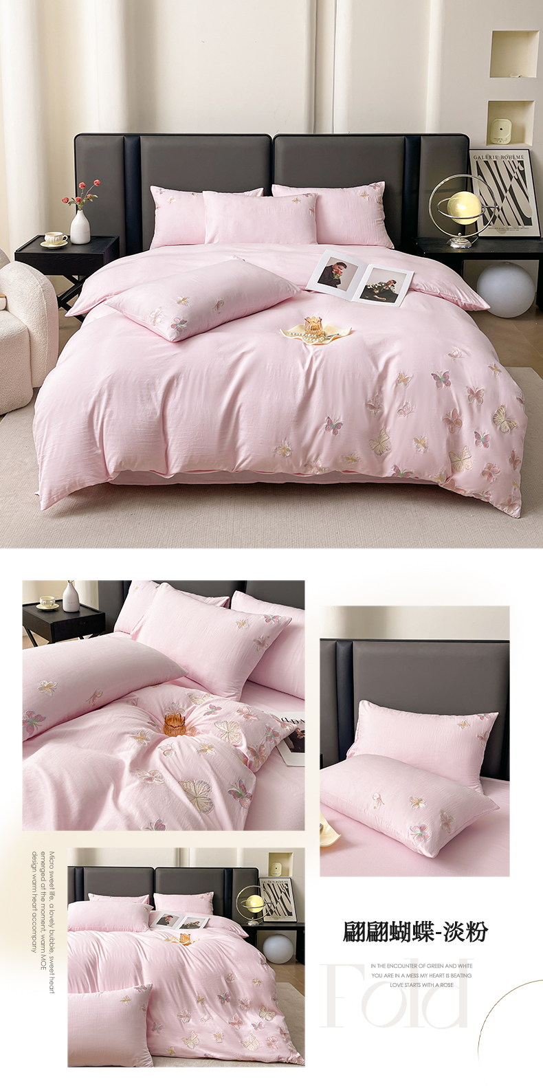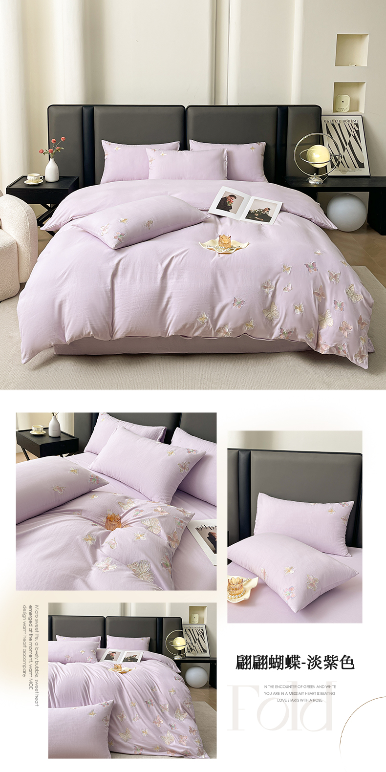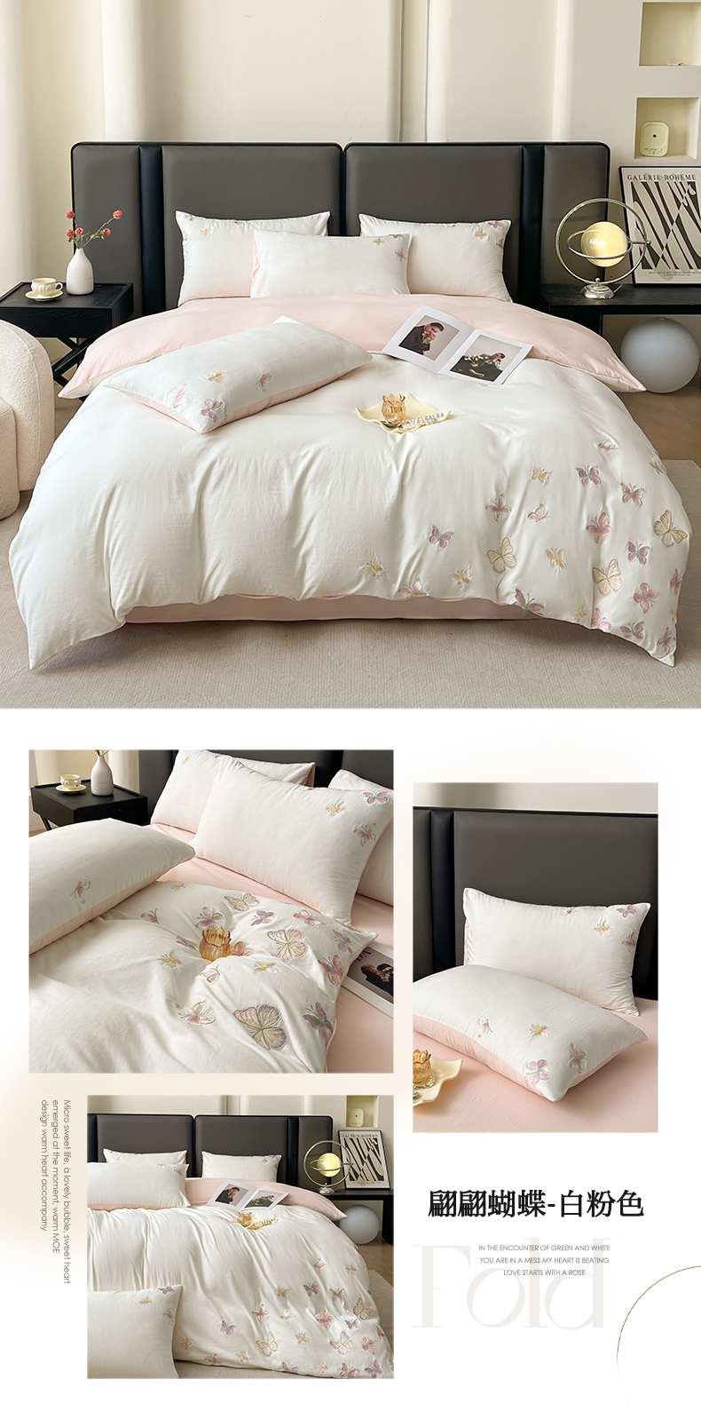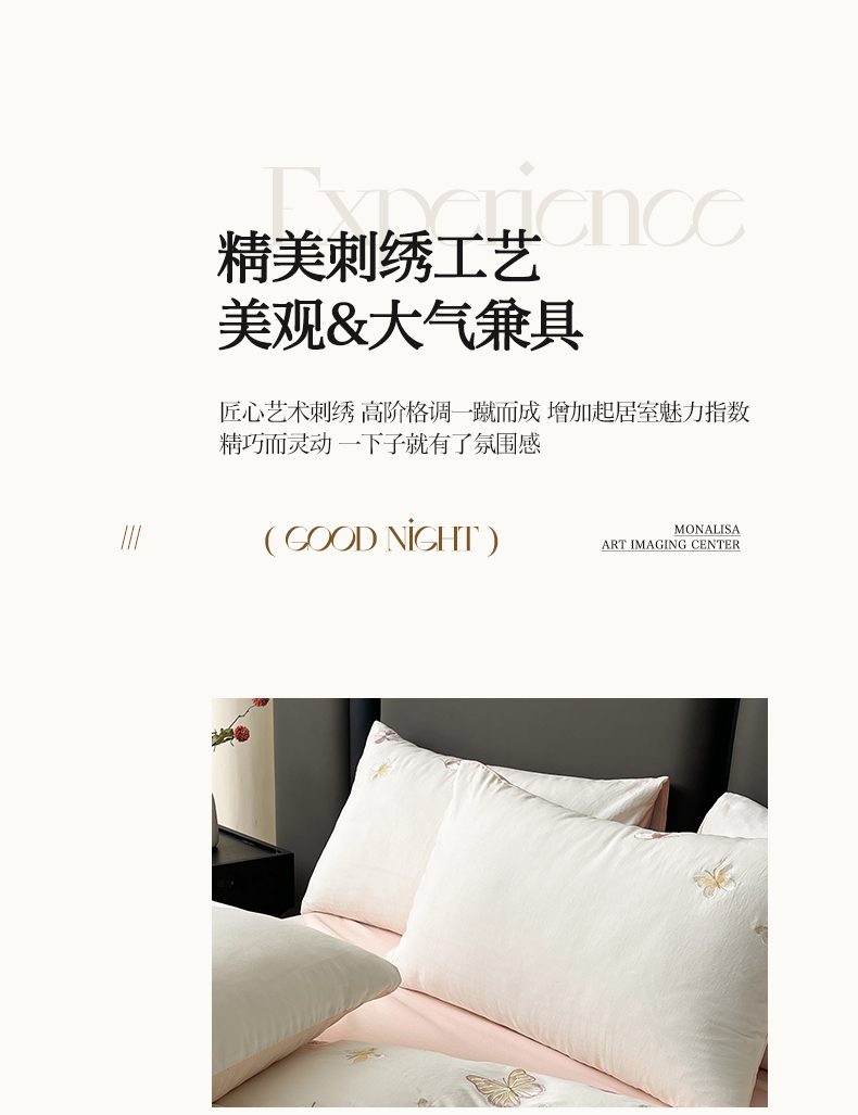 商品名称:逸尚阁 2025新款水洗磨毛刺绣四件套--七彩蝴蝶系列(提供买家秀) 七彩蝴蝶-浅玉