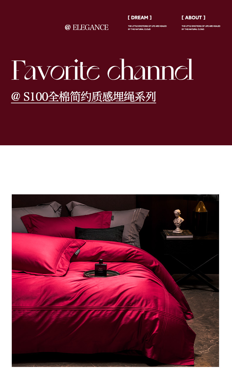商品名称:(总)三味舒屋2025新款S50全棉极致简约质感埋绳婚庆系列柏林朗姆酒红