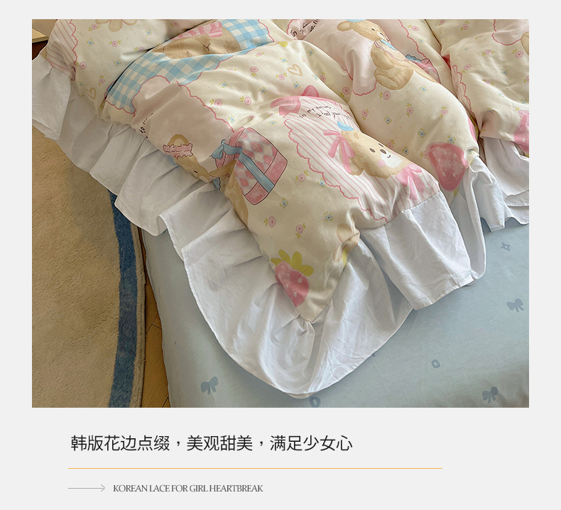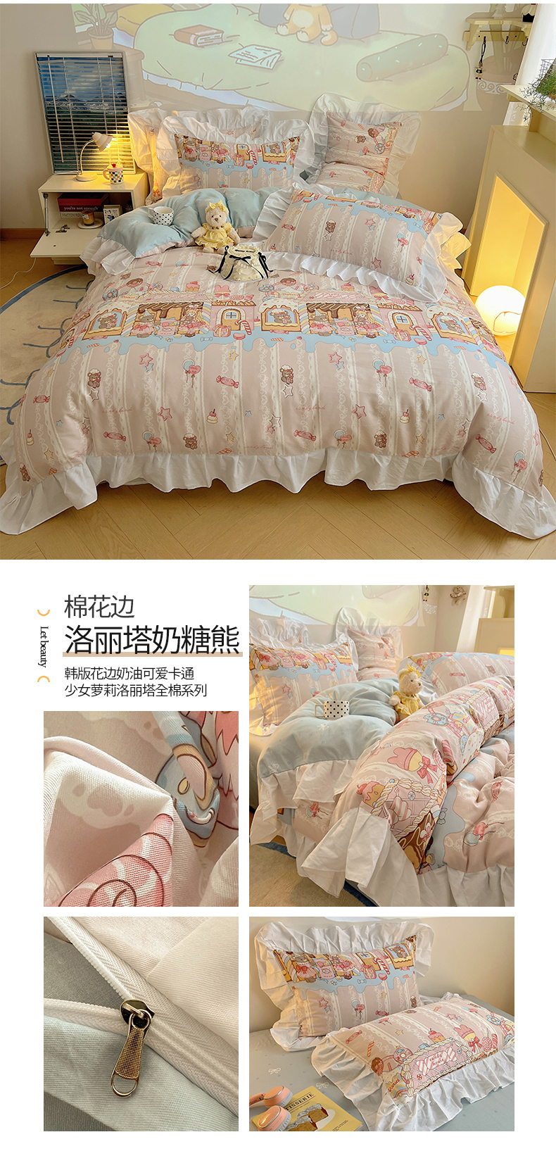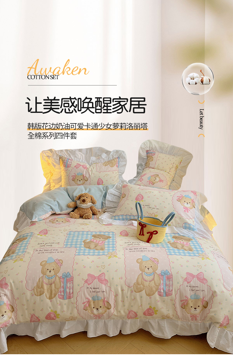商品名称:桃子家居 (总)2025纯棉韩版花边奶油可爱卡通少女萝莉洛丽塔系列全棉卡通四件套