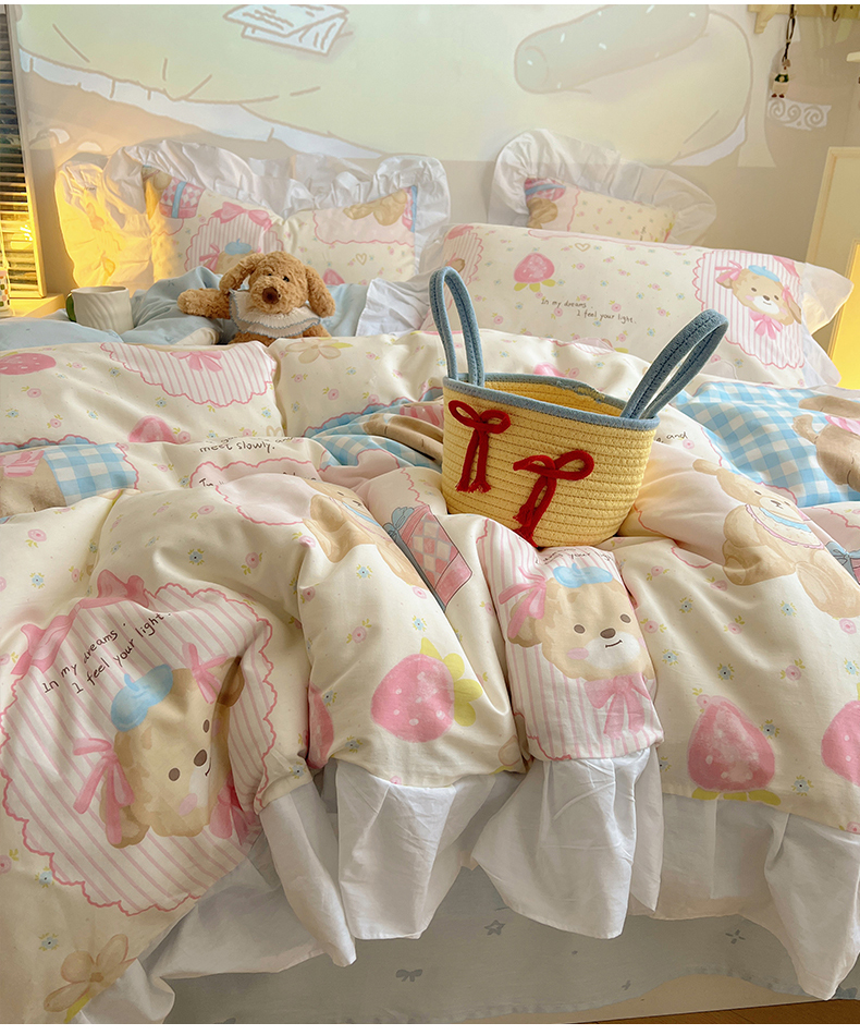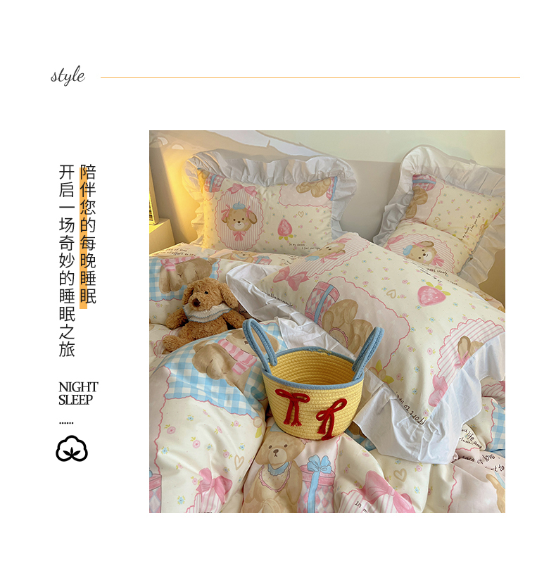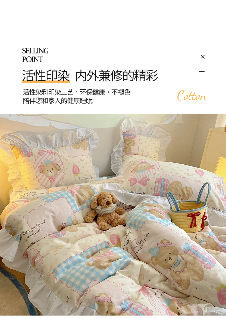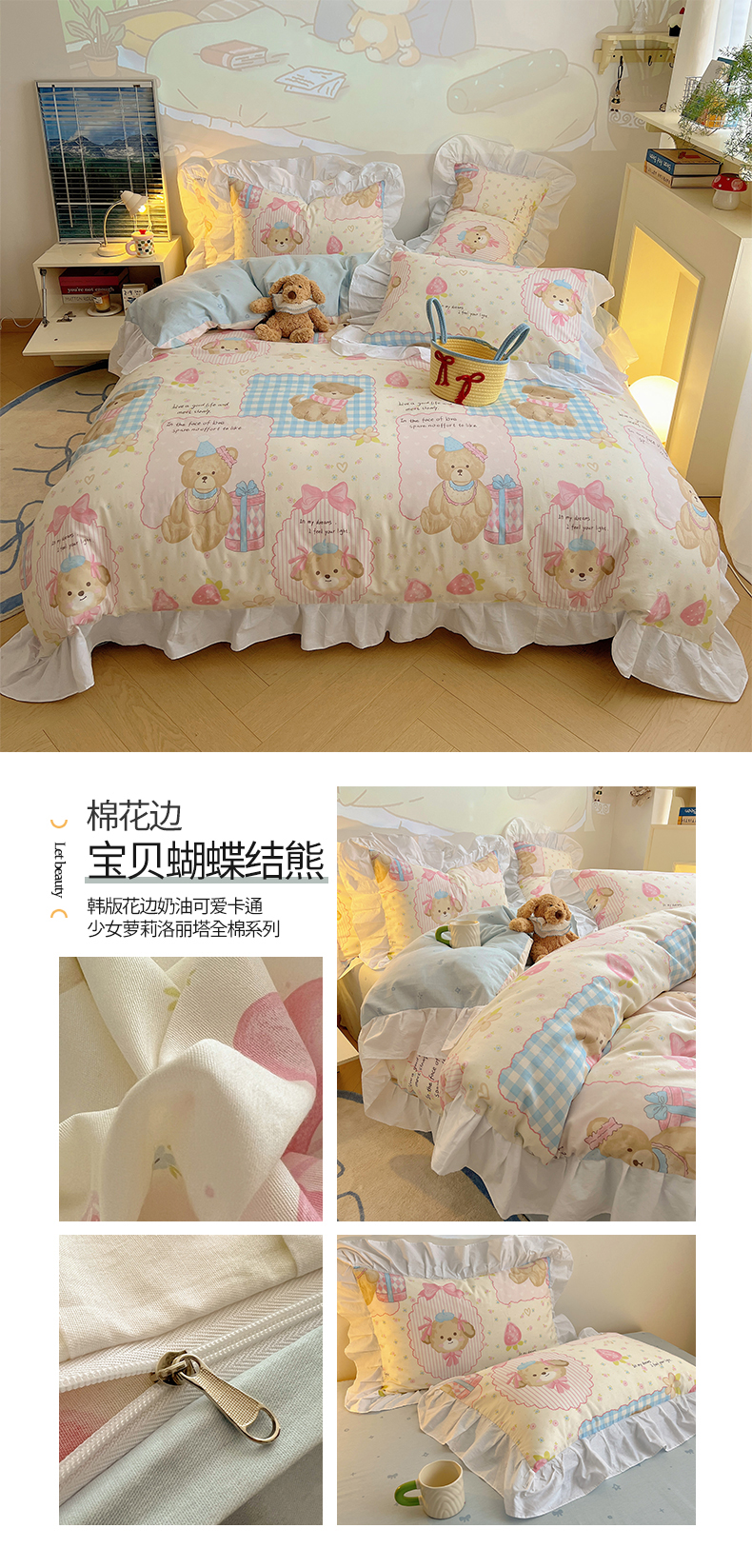 商品名称:桃子家居 (总)2025纯棉韩版花边奶油可爱卡通少女萝莉洛丽塔系列全棉卡通四件套