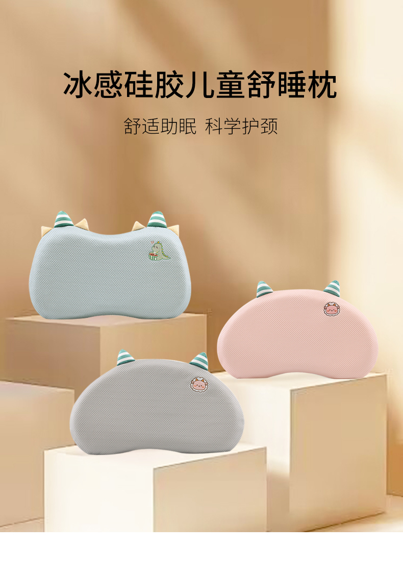 商品名称:小猫派2025新款冰感硅胶儿童舒睡枕 枕头枕芯 硅胶恐龙粉
