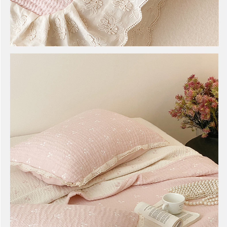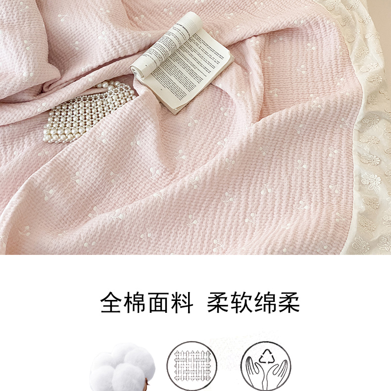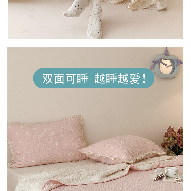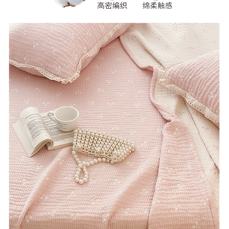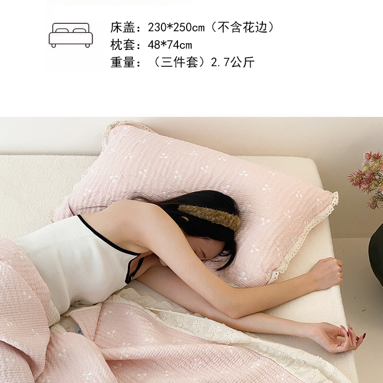 商品名称:麻依 2025新款韩国清新全棉纱布床盖三件套 车厘子