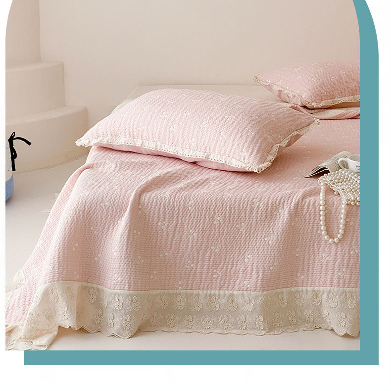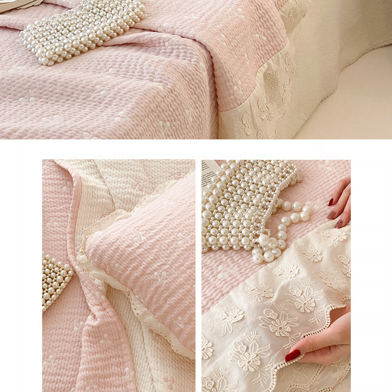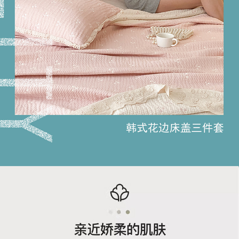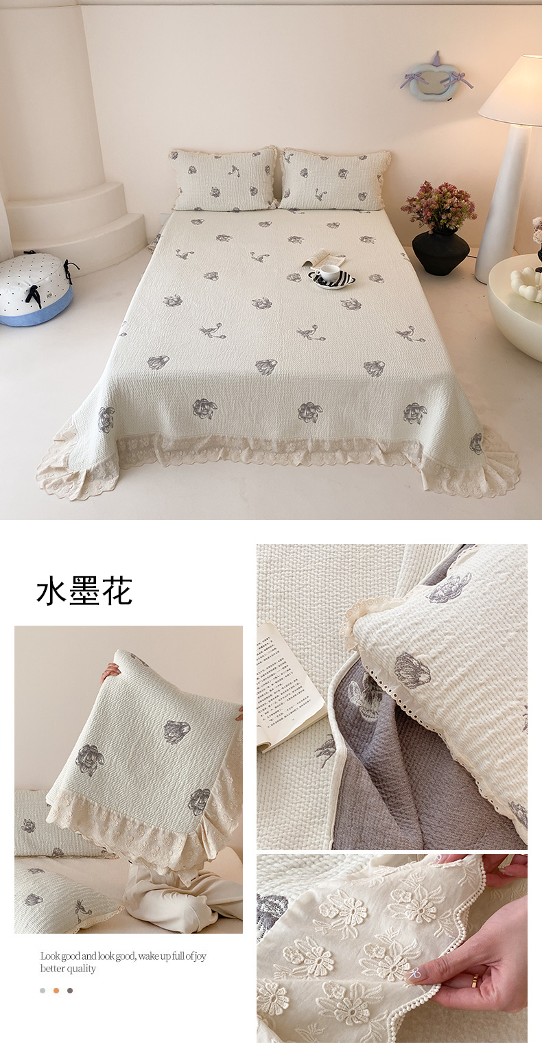 商品名称:麻依 2025新款韩国清新全棉纱布床盖三件套 车厘子