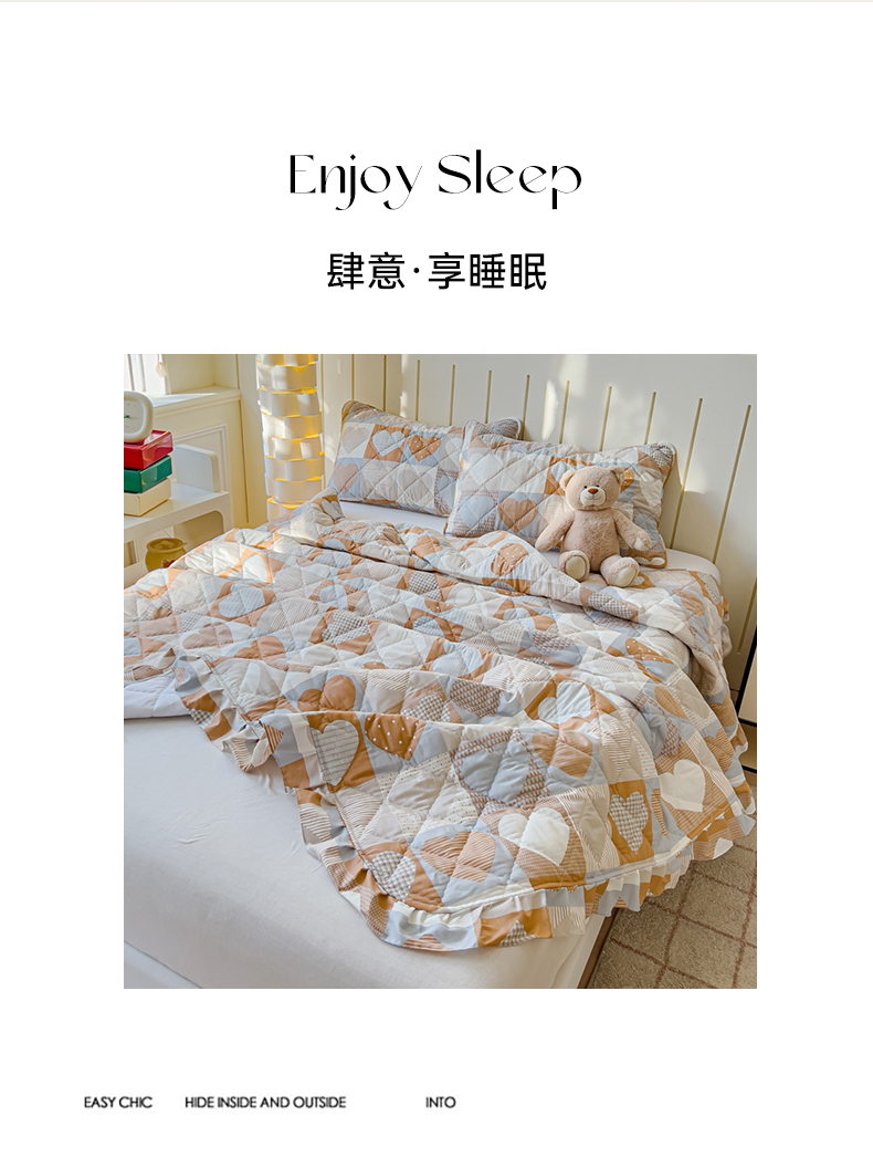 U品汇 2025新品A类全棉夹棉床盖纯棉100%棉绗缝三件套炕垫褥子13372 G童话时光