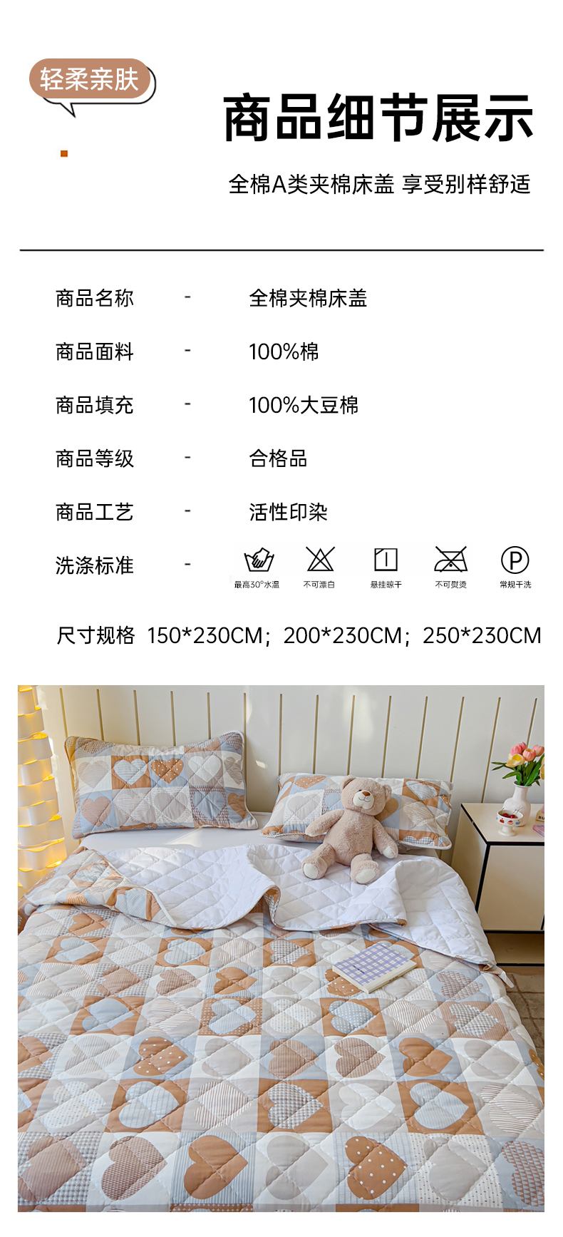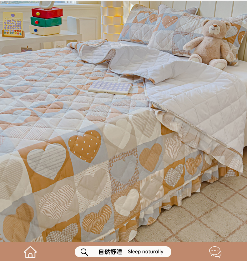 商品名称:U品汇 2025新品A类全棉夹棉床盖纯棉100%棉绗缝三件套炕垫褥子13372 G童话时光