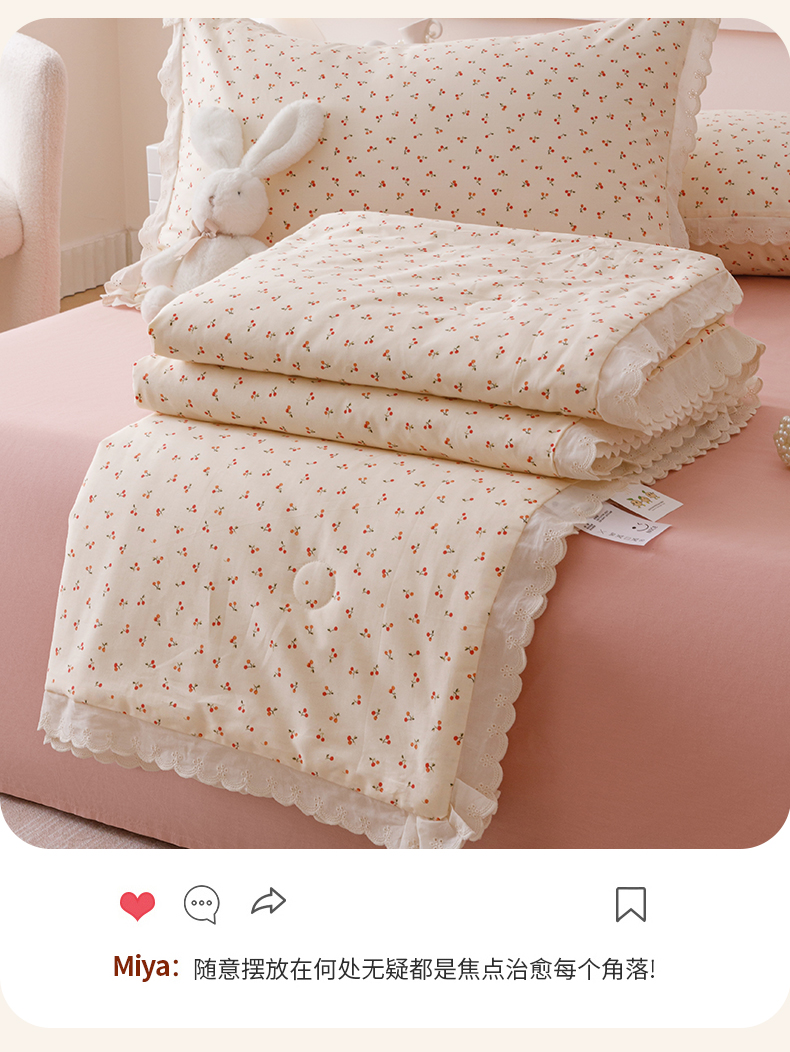 优被业 2025新款全棉韩式小碎花花边夏被 夕颜花开