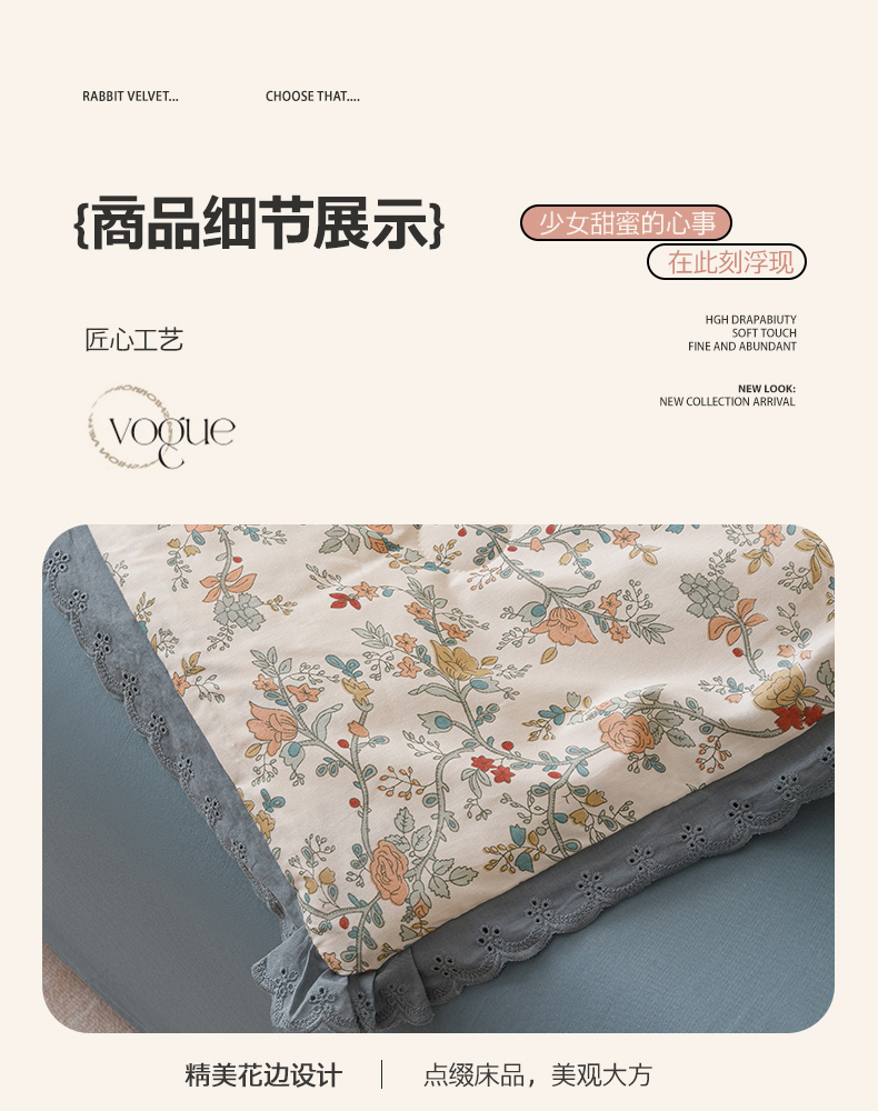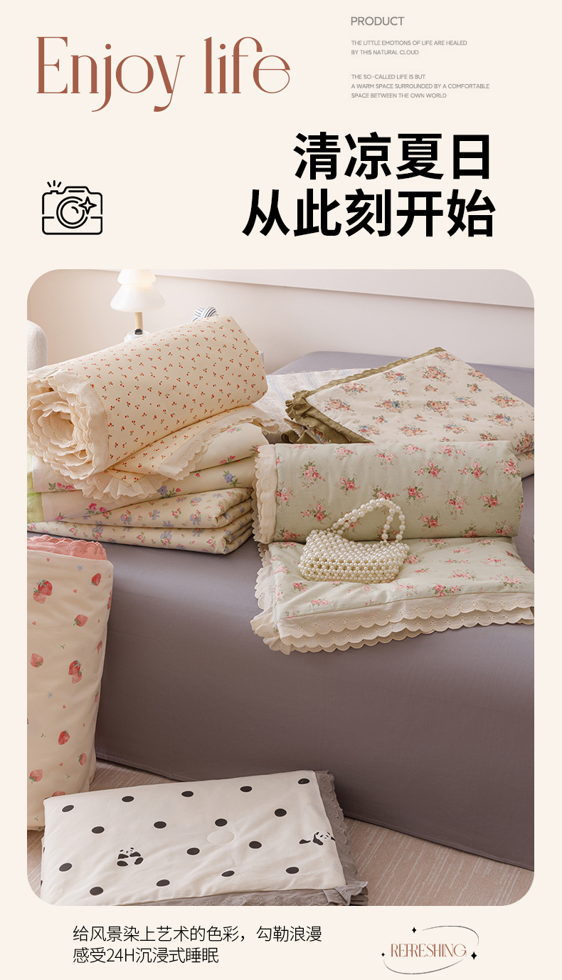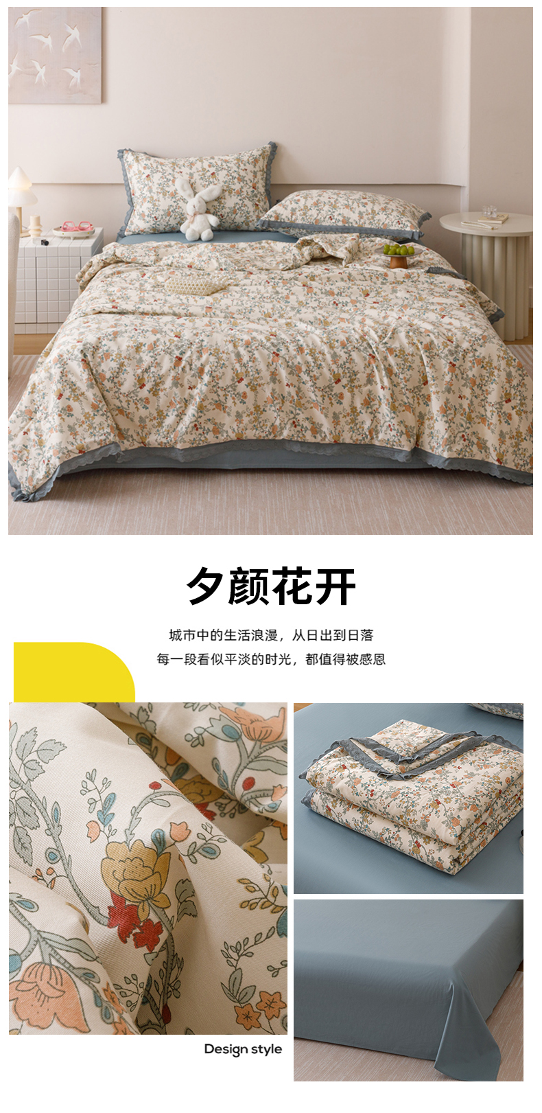• 91家纺网 家纺一手货源 找家纺 优被业 2025新款全棉韩式小碎花花边夏被 夕颜花开
