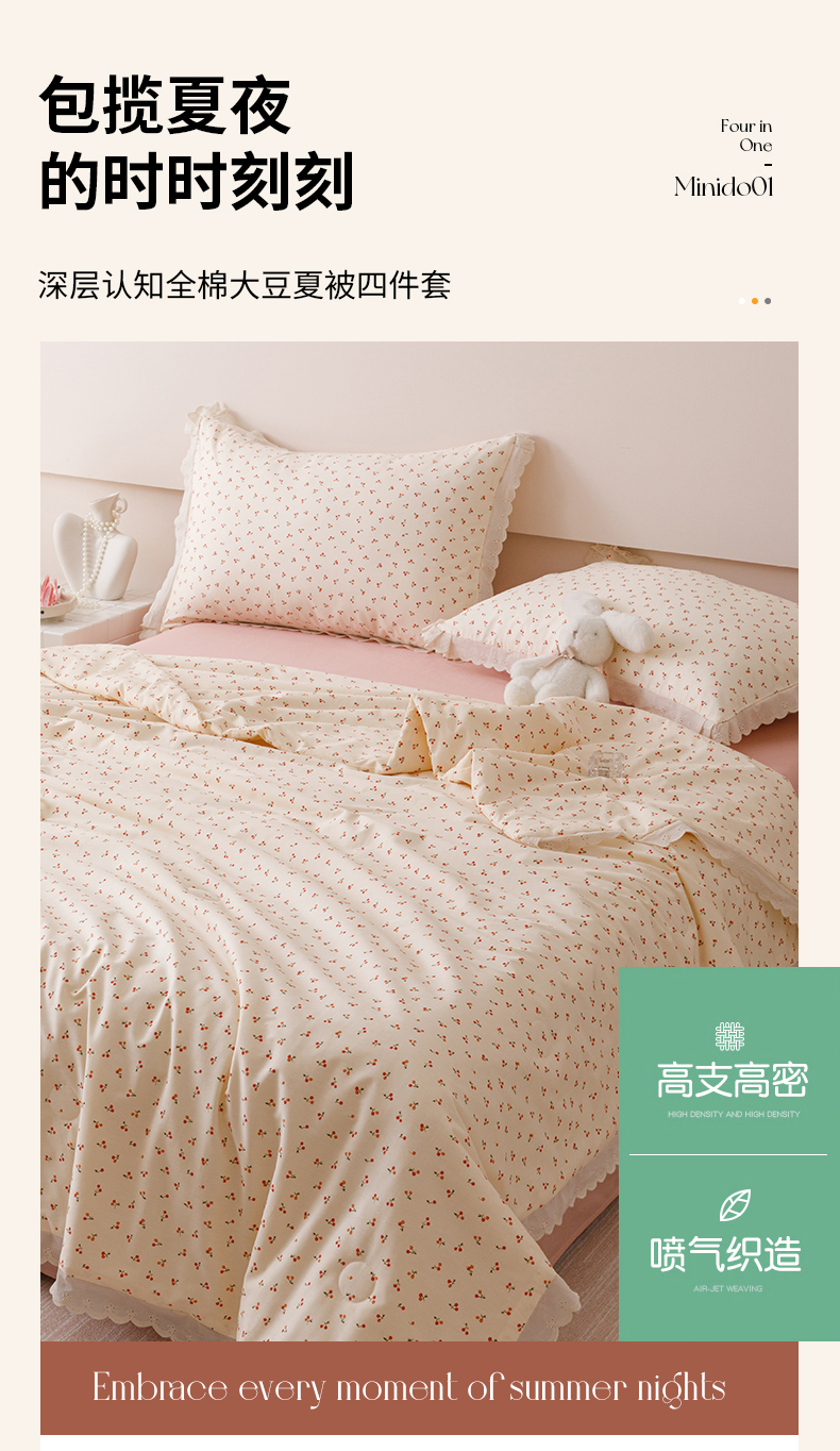 (总)优被业 2025新款全棉13372大豆夏被四件套小碎花系列,比菲兔,风姿,静笙,玲珑小兔,菱格,洛可可,梦露熊,妙影,葡萄仙子,奇迹世界,浅夏,少女心,守护甜心,素颜,田园沐歌,抱抱熊,妃子笑,复古花,露娜,梦田,蜜拉,茉莉花,挪威风情,如愿,山茶花,四季予你,仙草,小贝熊,樱桃季